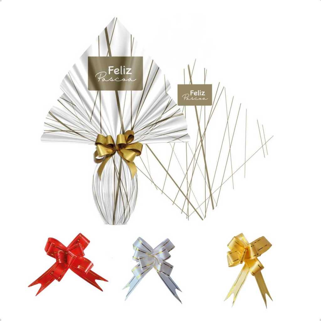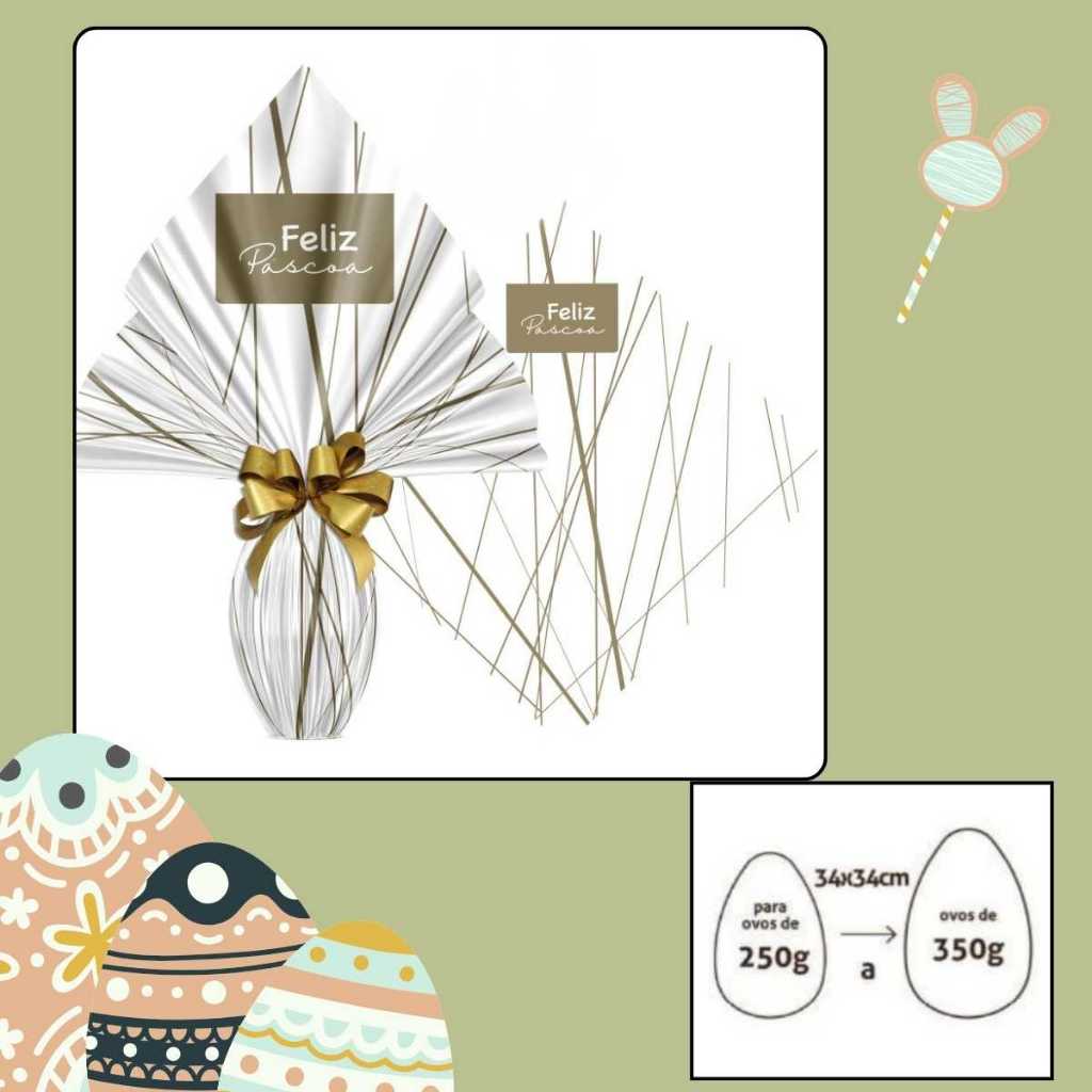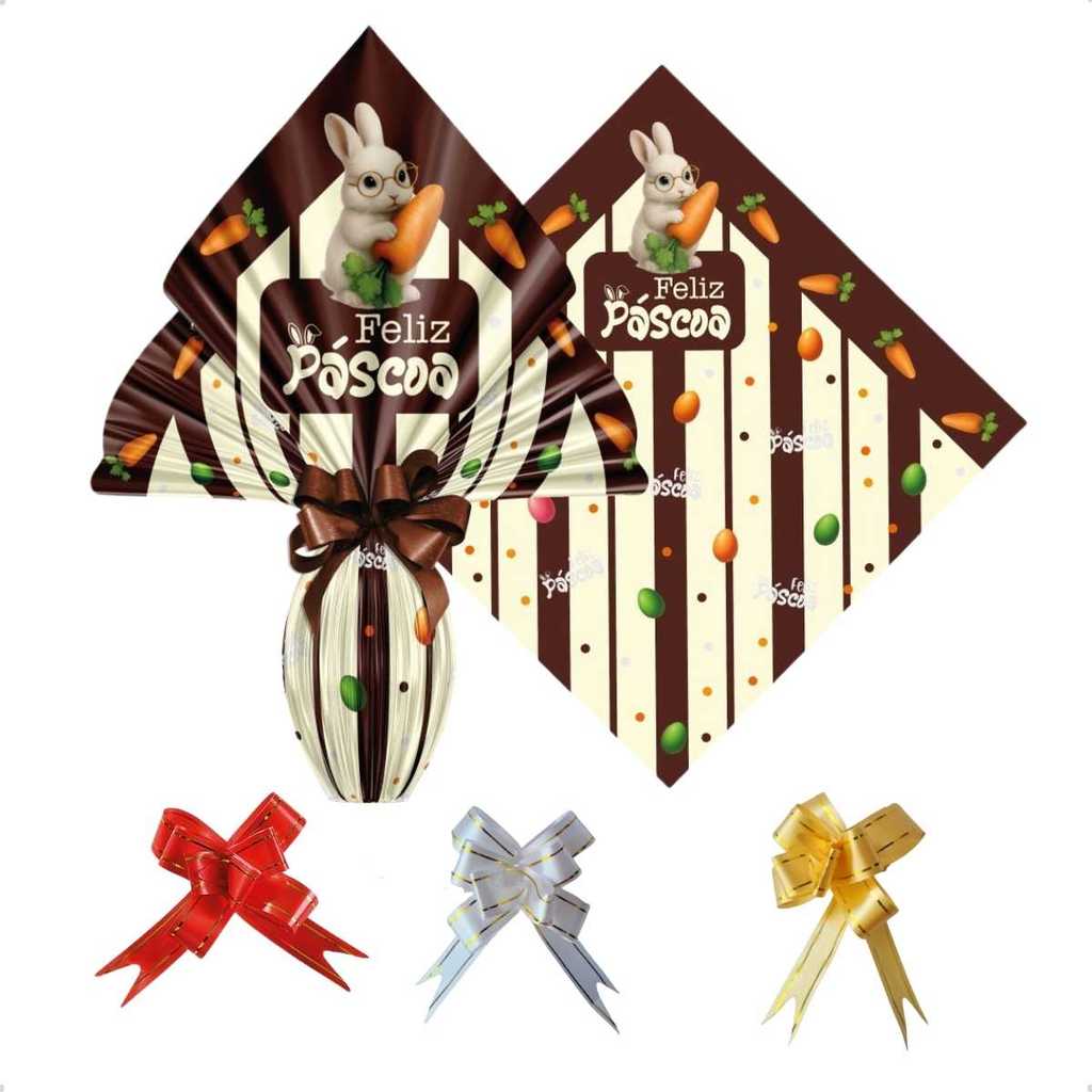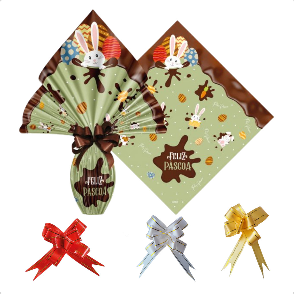 Saco Embalagem Ovo Páscoa Prático 25UN com Laços 250 a 350g Embrulho Prático Confeitaria Caseira