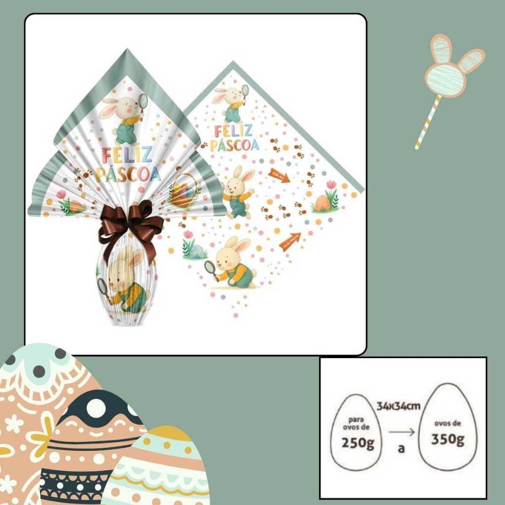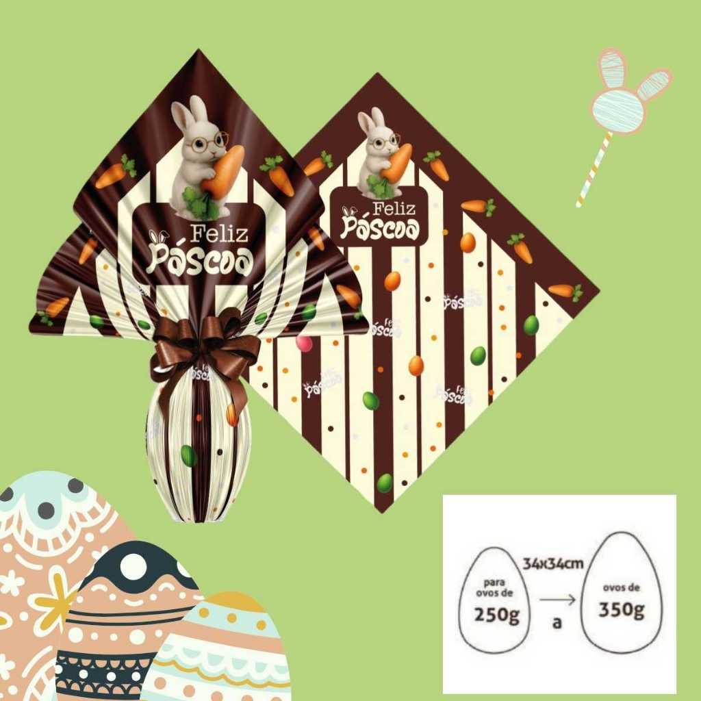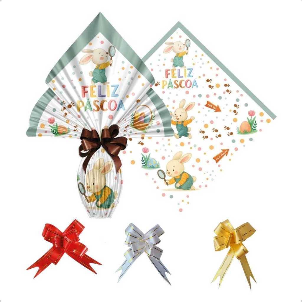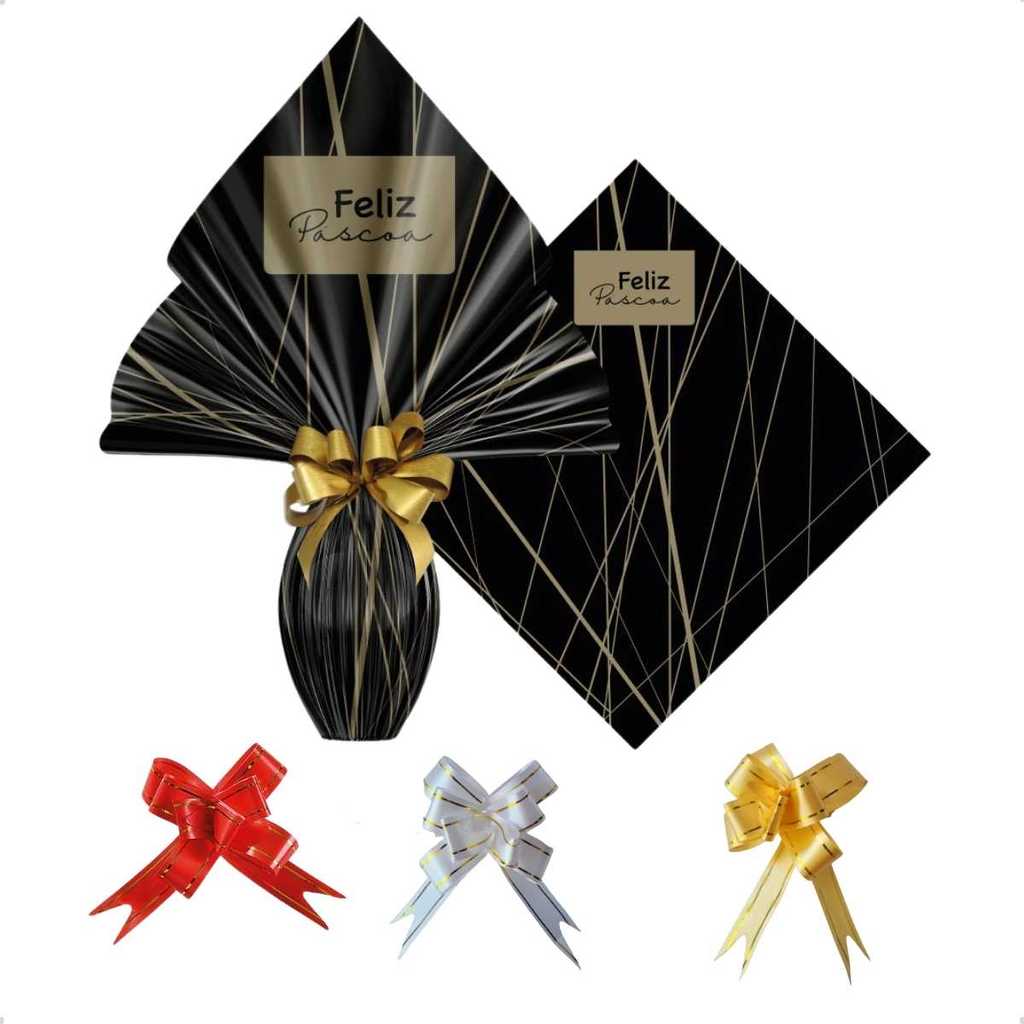 Saco Embalagem Ovo Páscoa Prático 25UN com Laços 250 a 350g Embrulho Prático Confeitaria Caseira