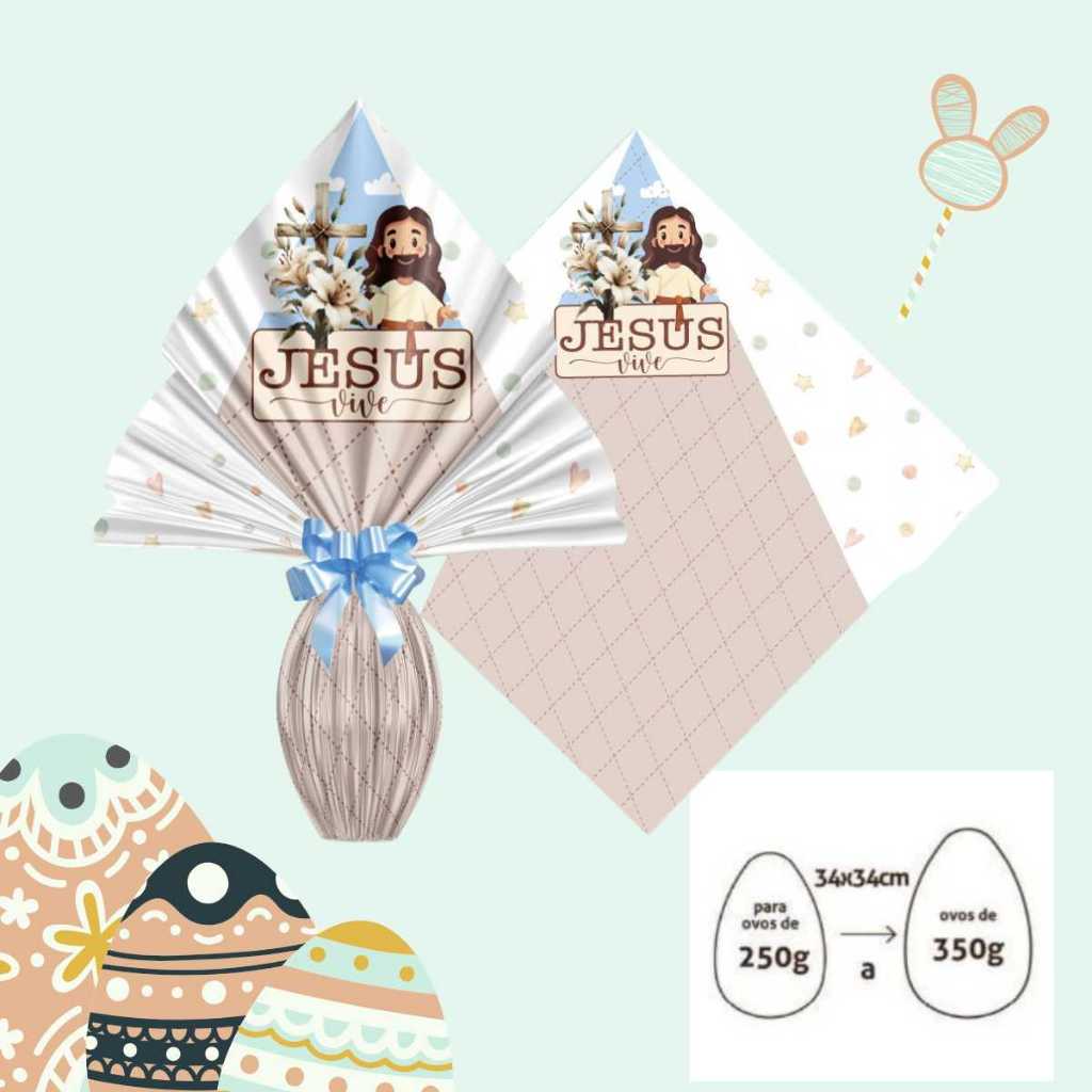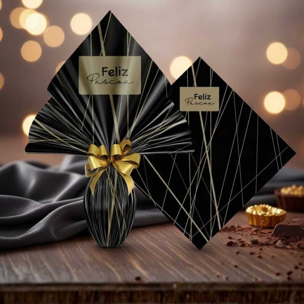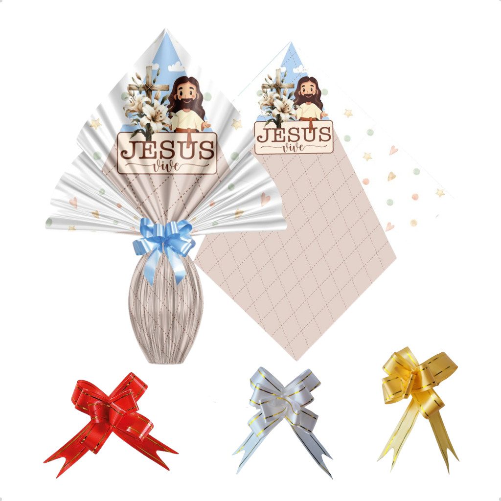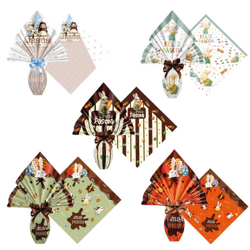 Saco Embalagem Ovo Páscoa Prático 25UN com Laços 250 a 350g Embrulho Prático Confeitaria Caseira