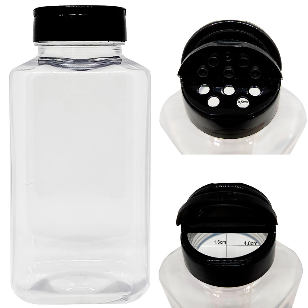 Kit 5 Potes De Plastico 500ml Porta Tempero Com Tampa Dosadora Dupla
