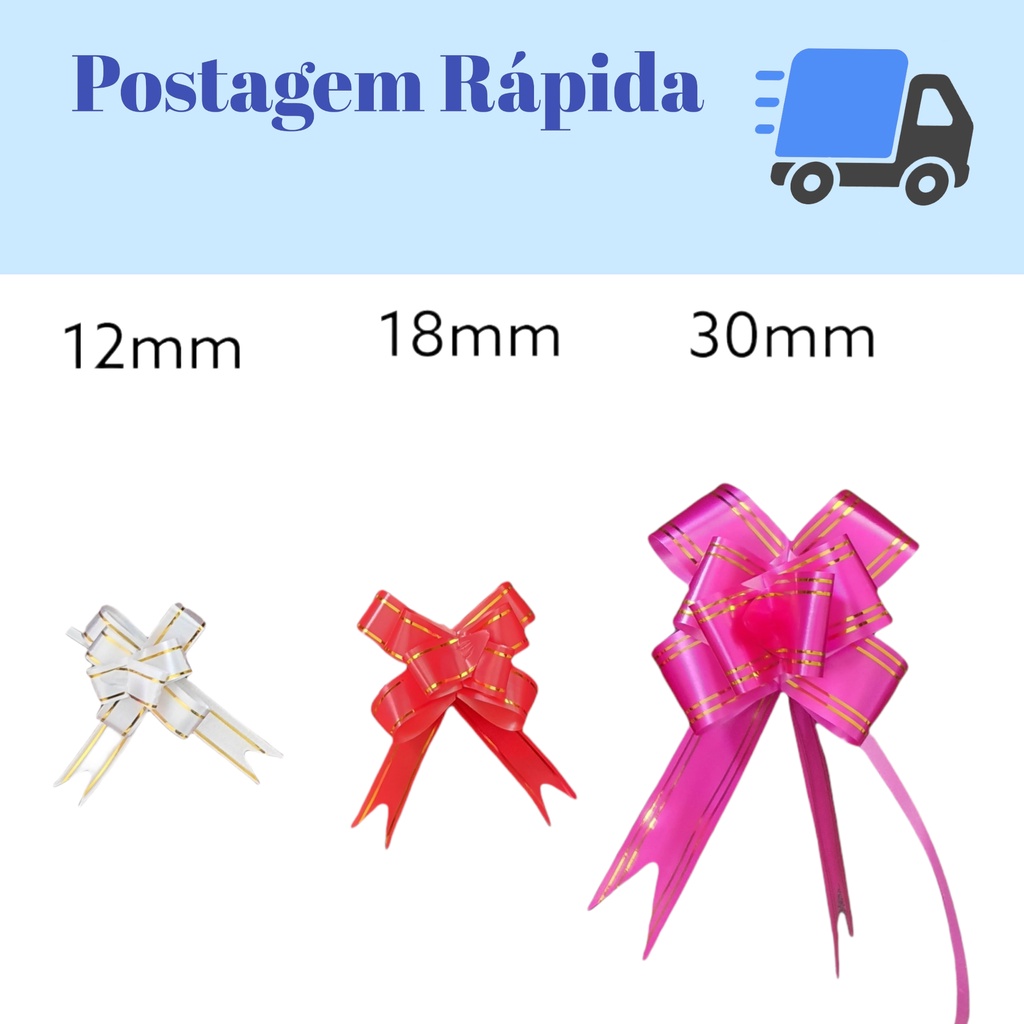 100 Laço Mágico Fita com Filete Dourado Lacinho Presente laco facil