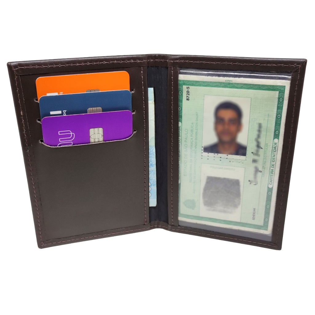 Carteira Masculina Porta Cartão Documento Couro P.U cabe RG CNH