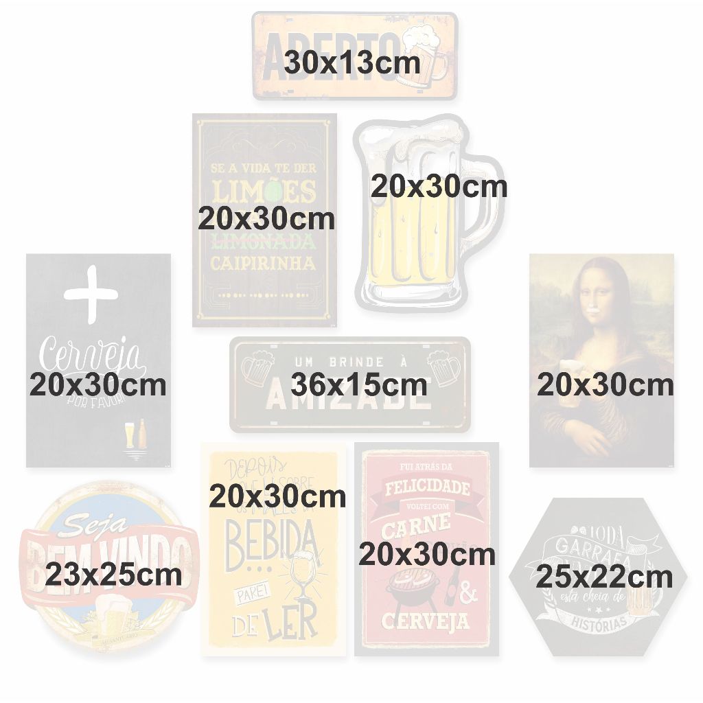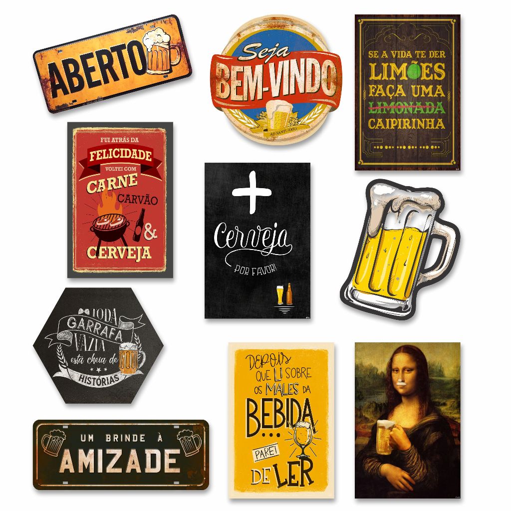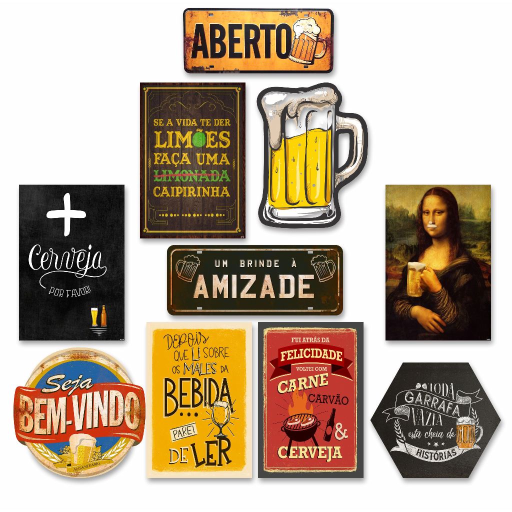 Kit com 10 placa decorativas em mdf - Cerveja Bebidas Churrasco