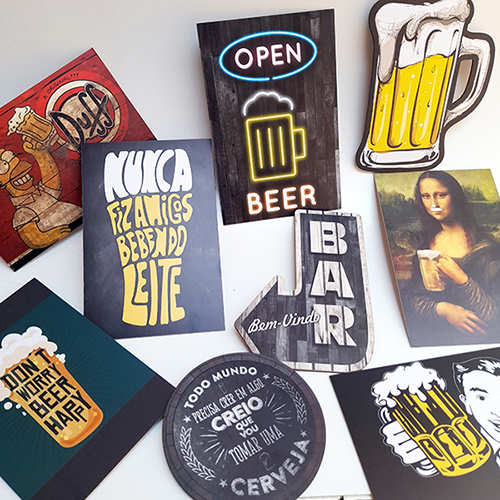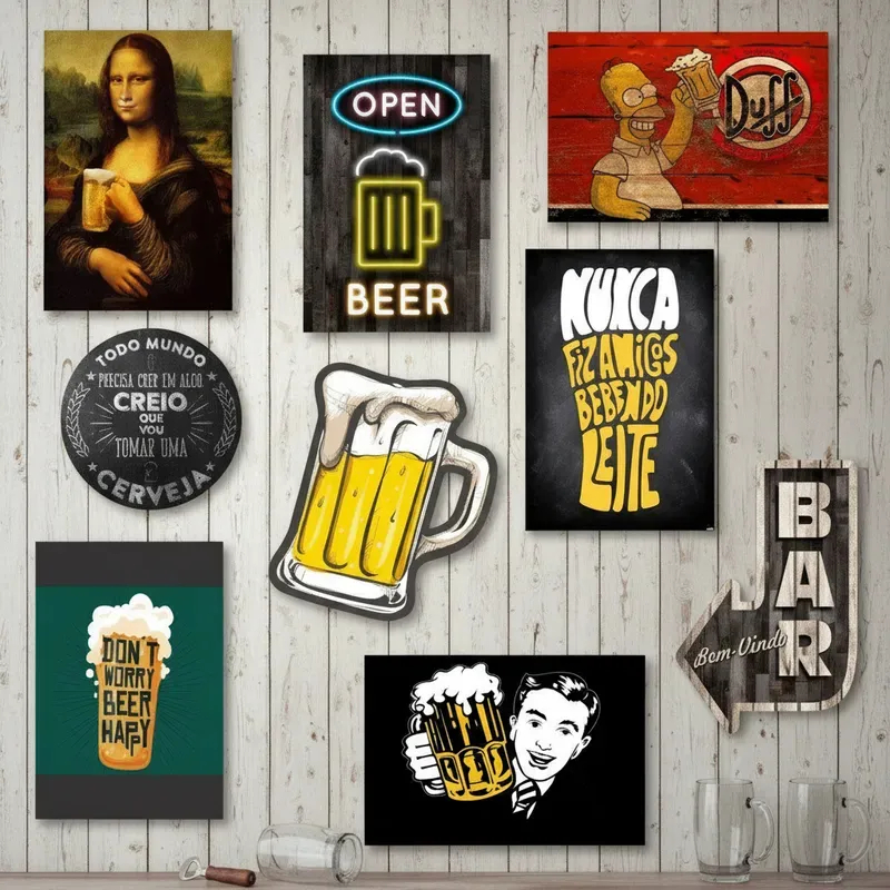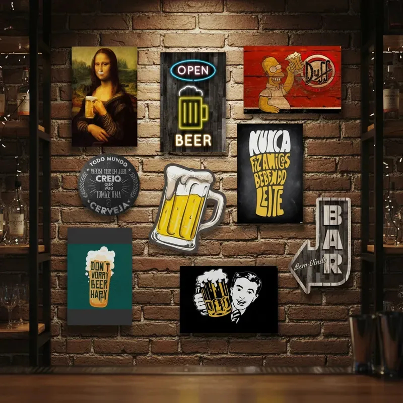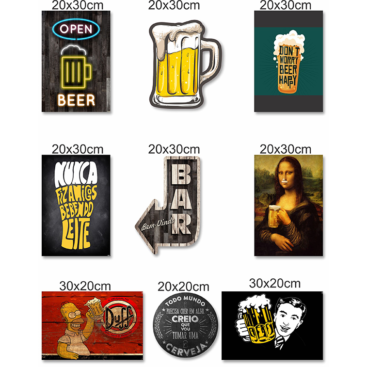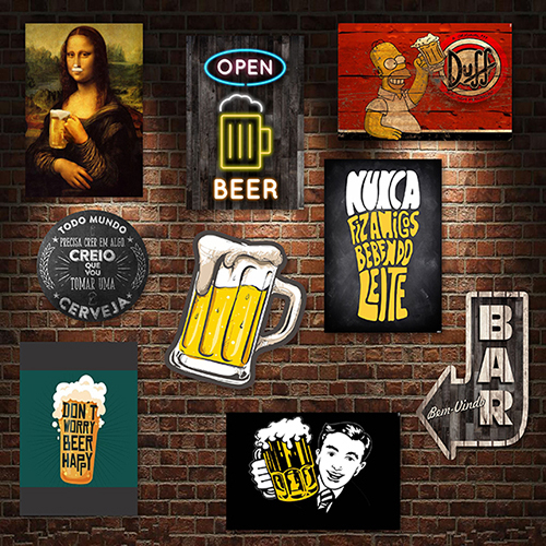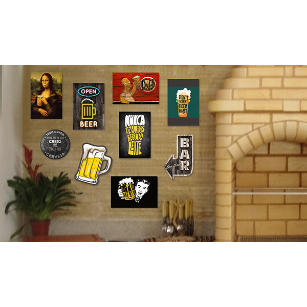 Kit Com 9 Placas Decorativas Em Mdf - Bebidas Retrô Bar