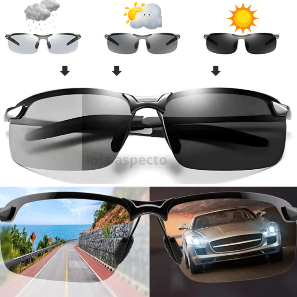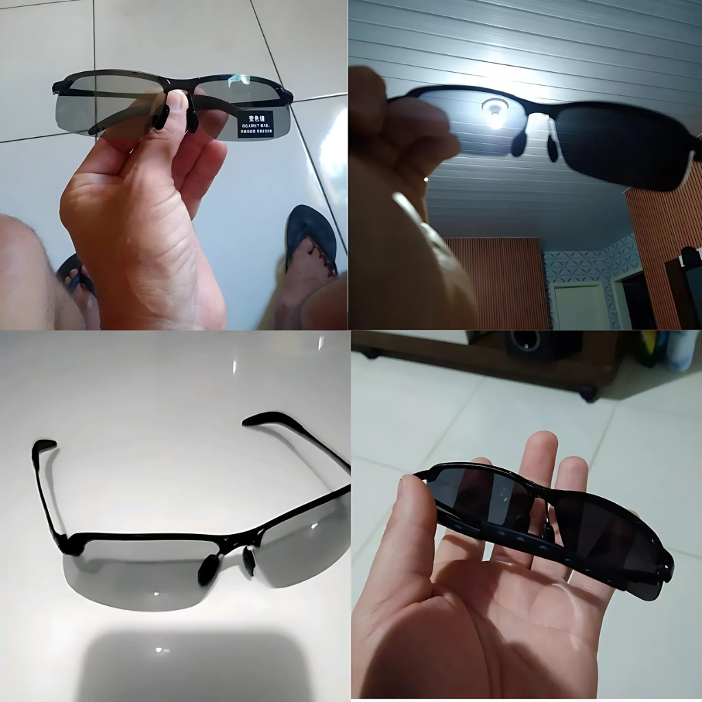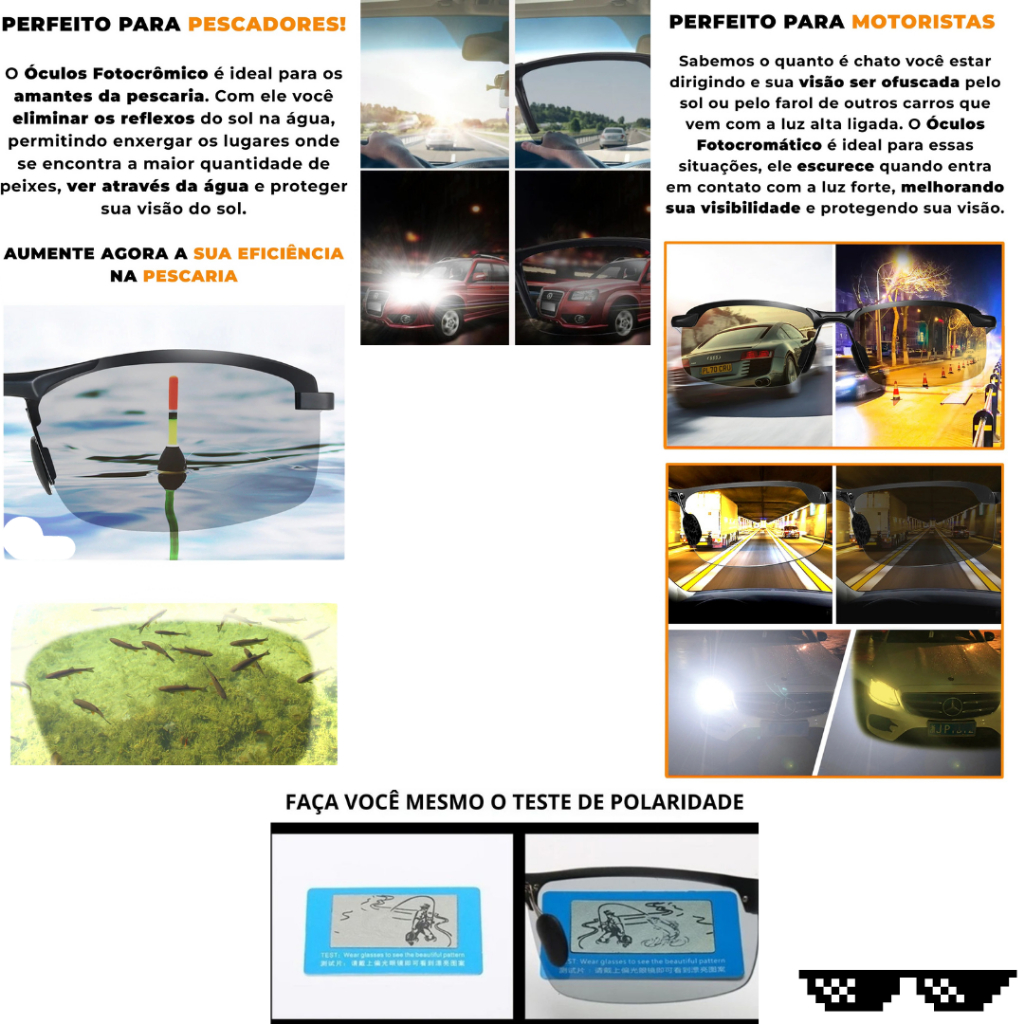 Óculos De Sol Camaleão Polarizado Fotocromático Com Proteção UV 400 De Metal + Cartão de Teste de Polaridade.