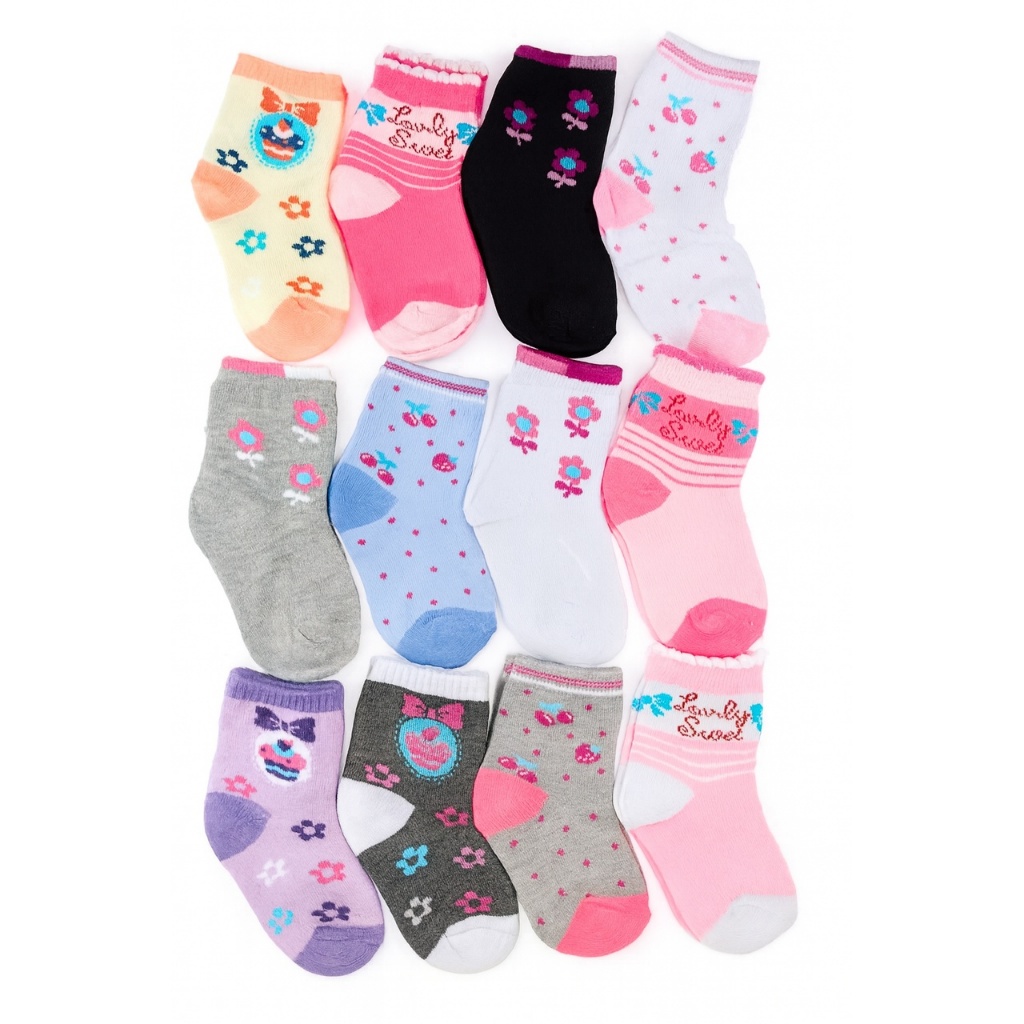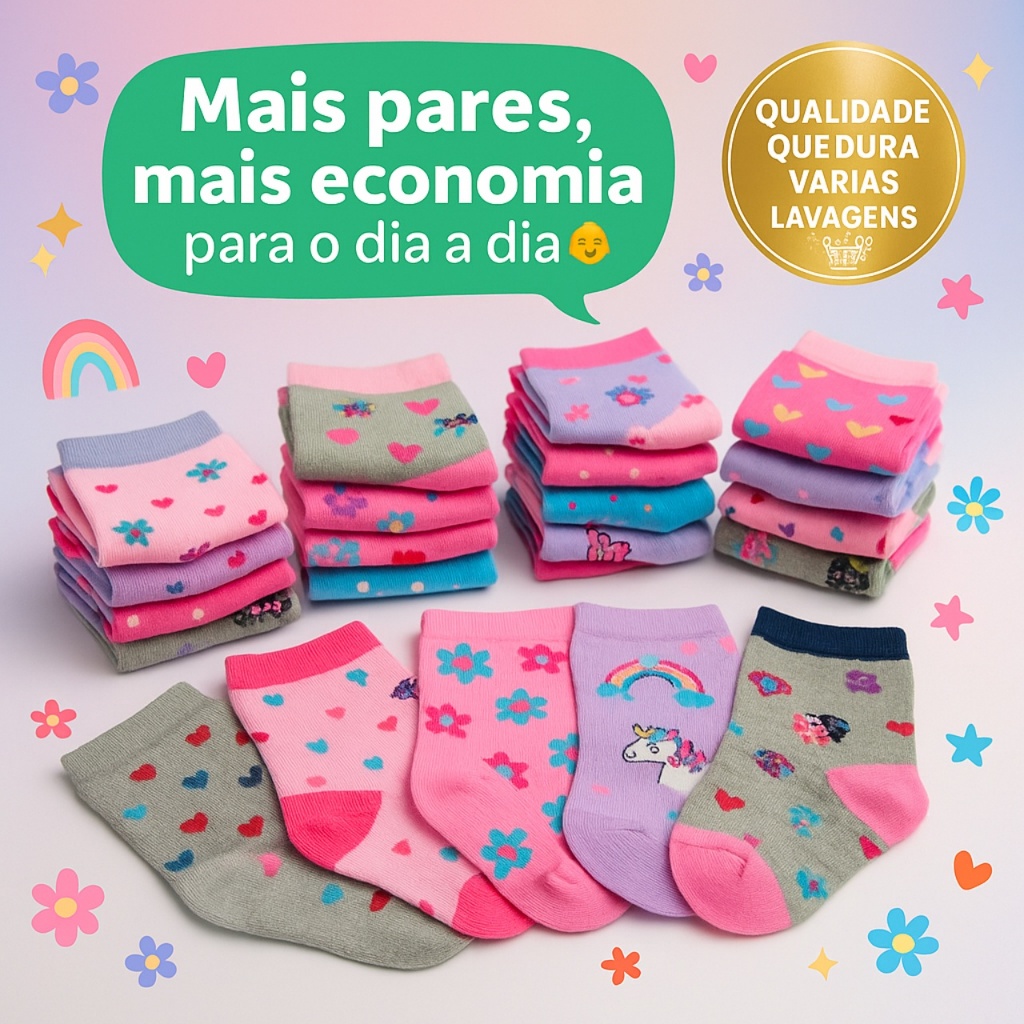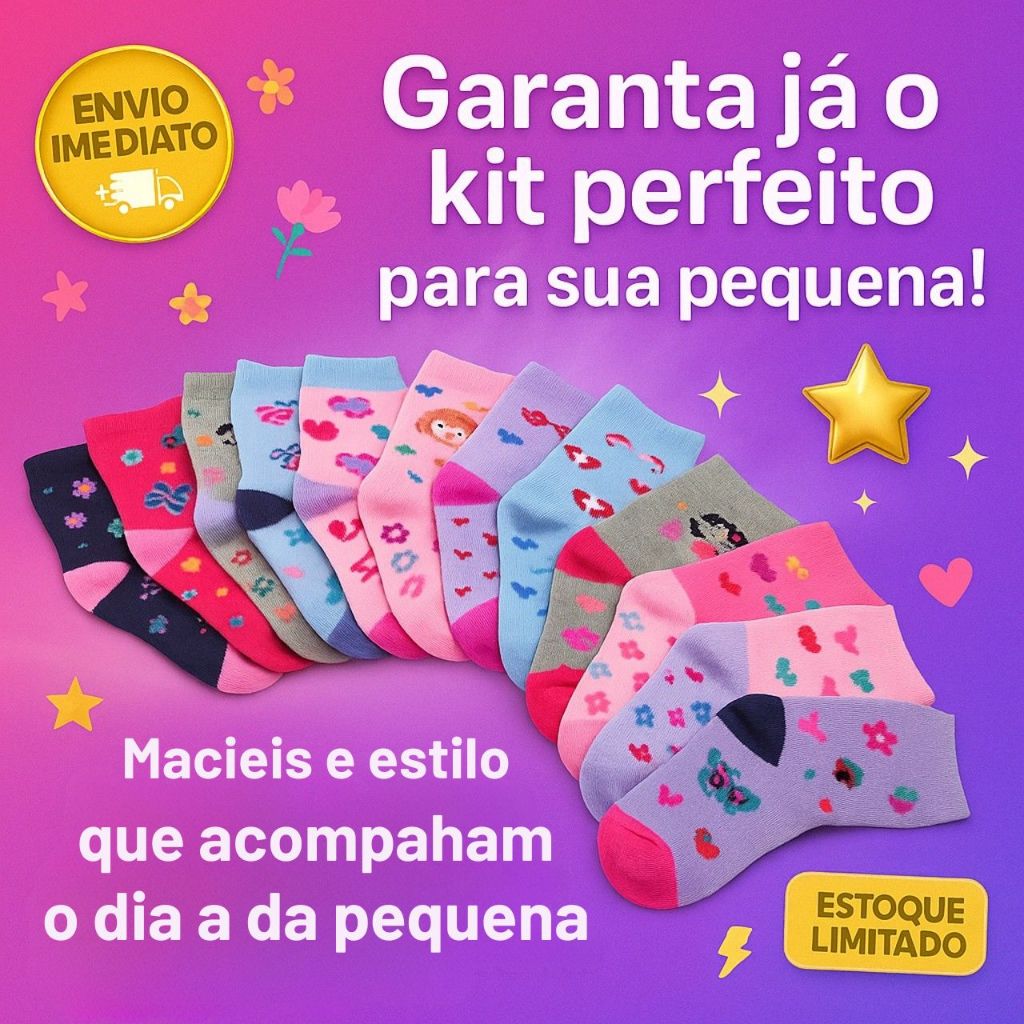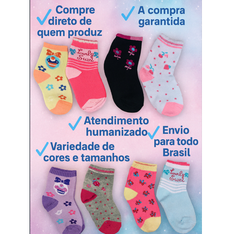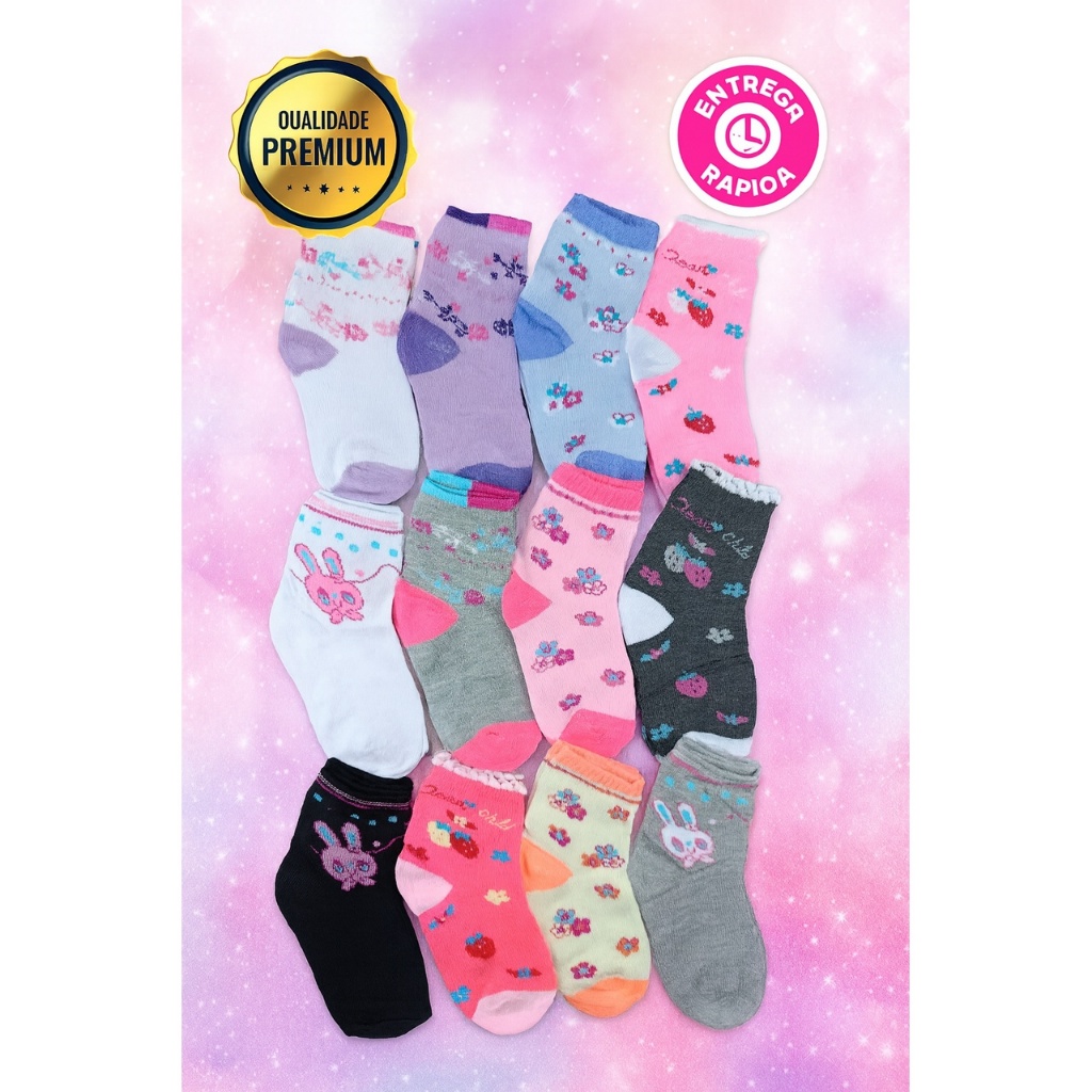 Kit 18 Pares de Meias Infantil Feminina e Bebê Menina Estampadas 0 a 12 Anos