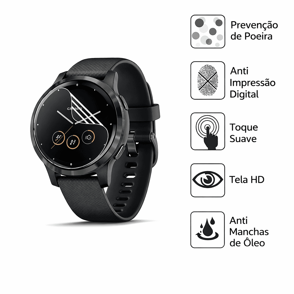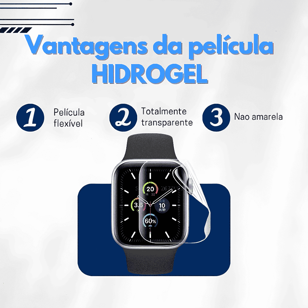 Pelicula Gel Hydrogel HD Anti Impacto Para Todos Modelos Relógio Redondo 35mm À 50mm