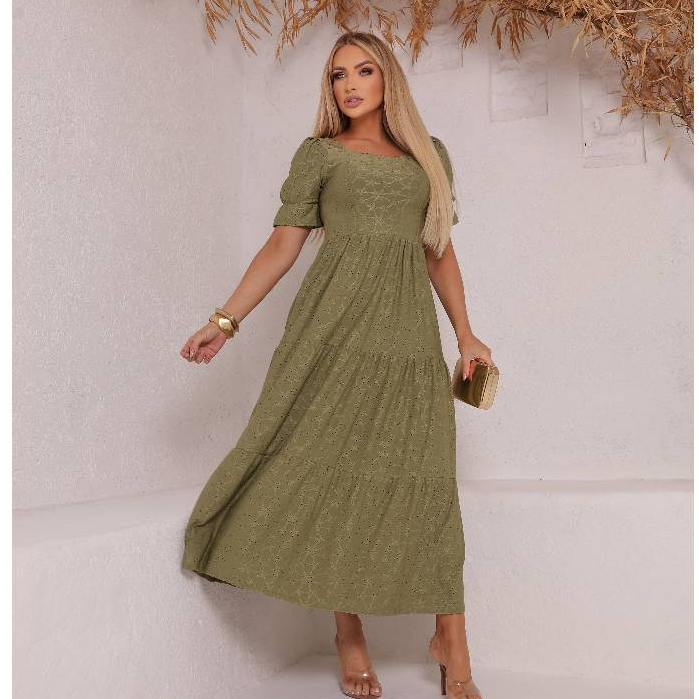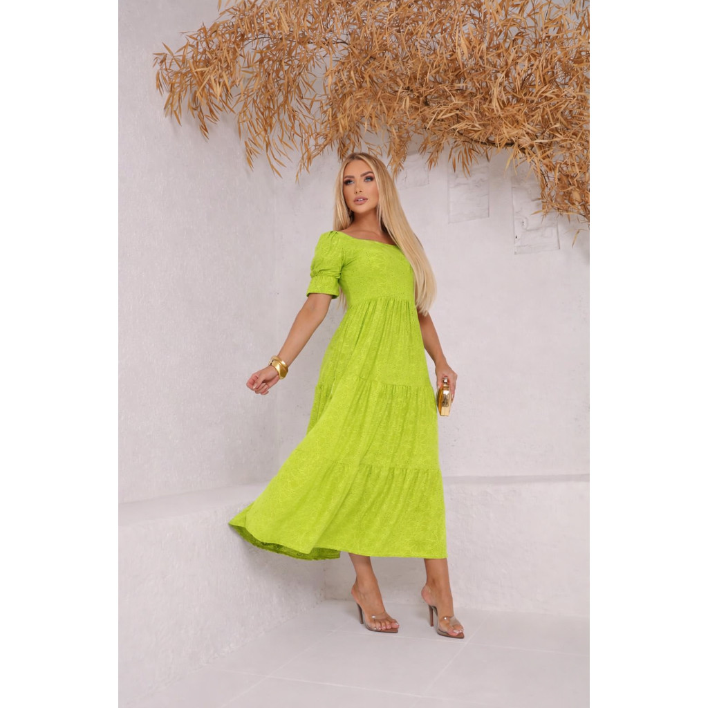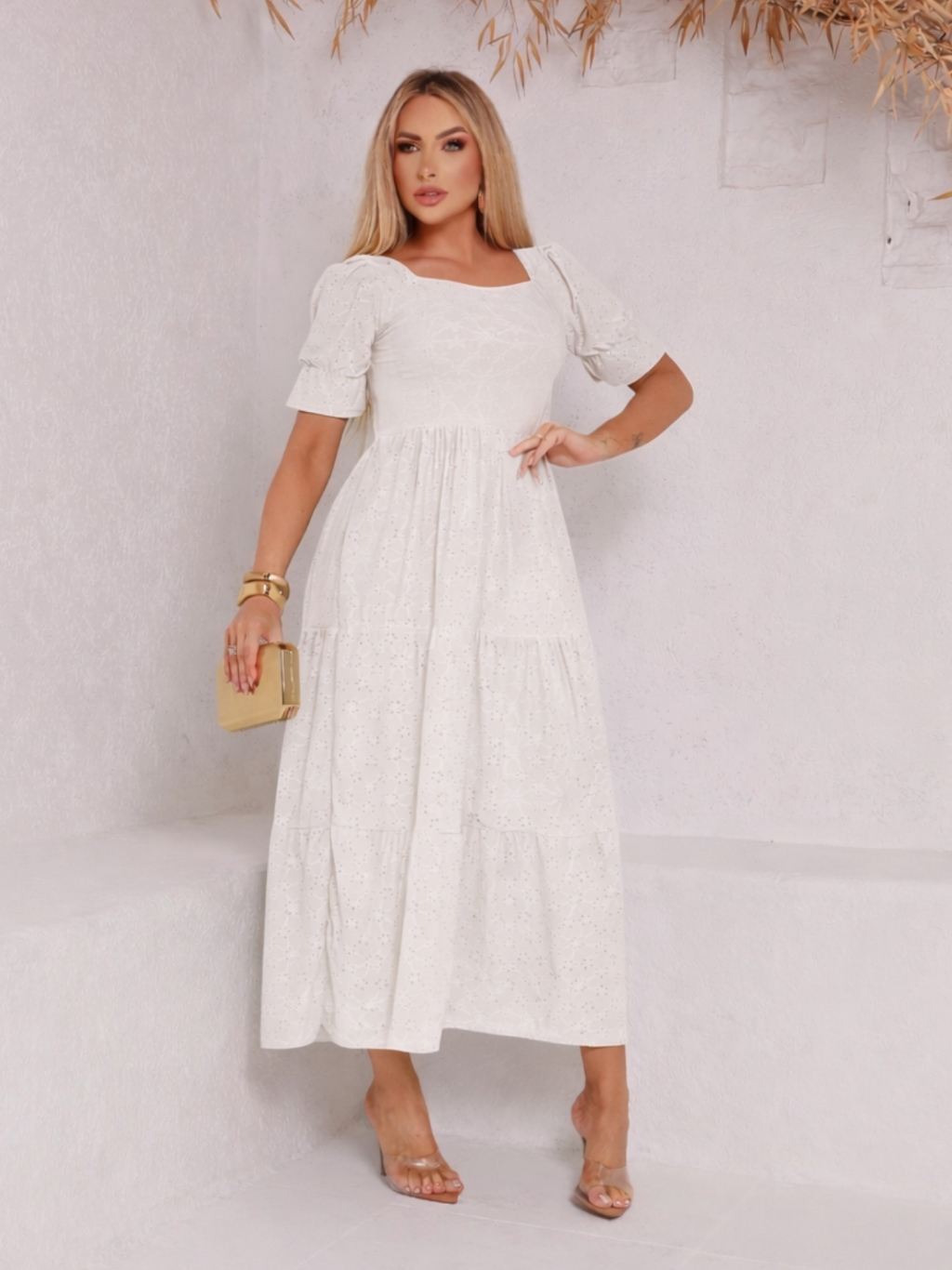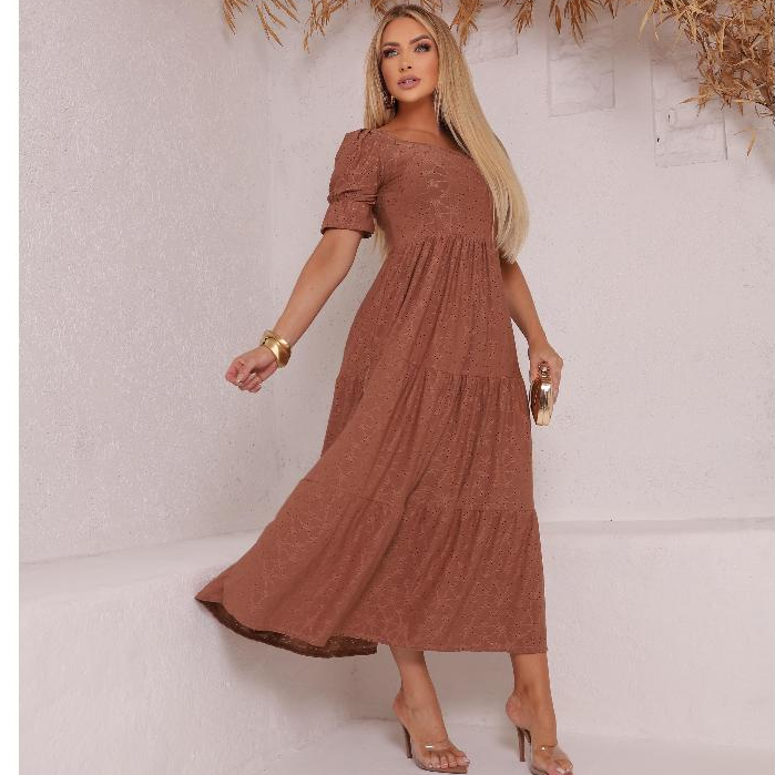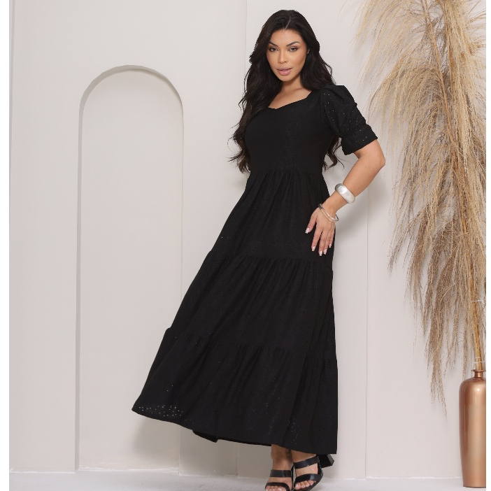 Vestido Longo Três Marias Feminino Malha Laise Midi Manga Bufante Forro no Busto e Saia, Cores Candy