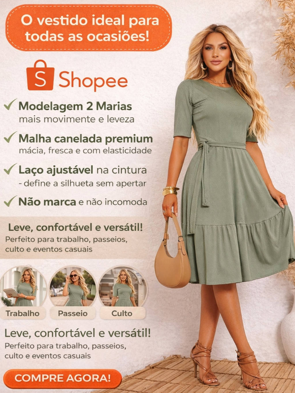 Vestido Moda Evangelica Midi Moda Crista Casual Feminino Malha