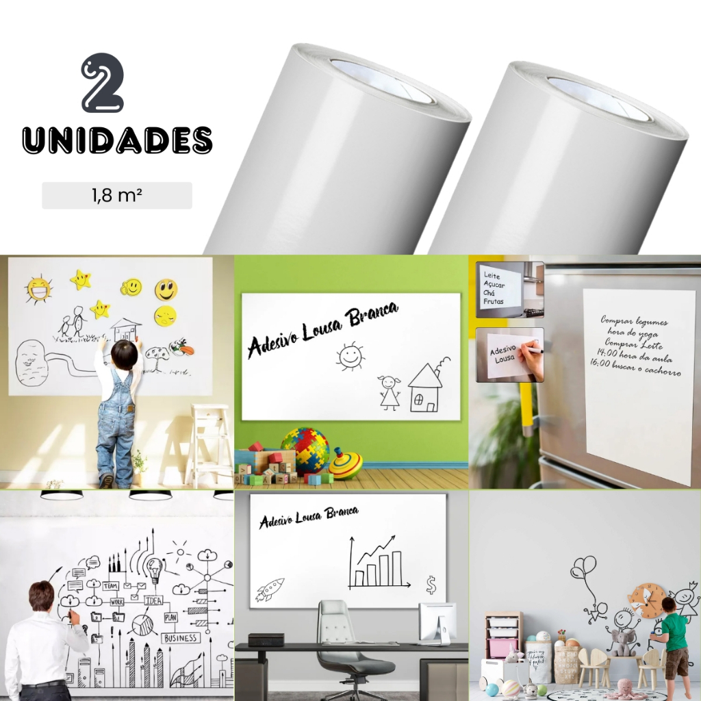 Adesivo Lousa Papel De Parede Branco 45 cm x 2 Metros Acompanha Caneta Com Apagador