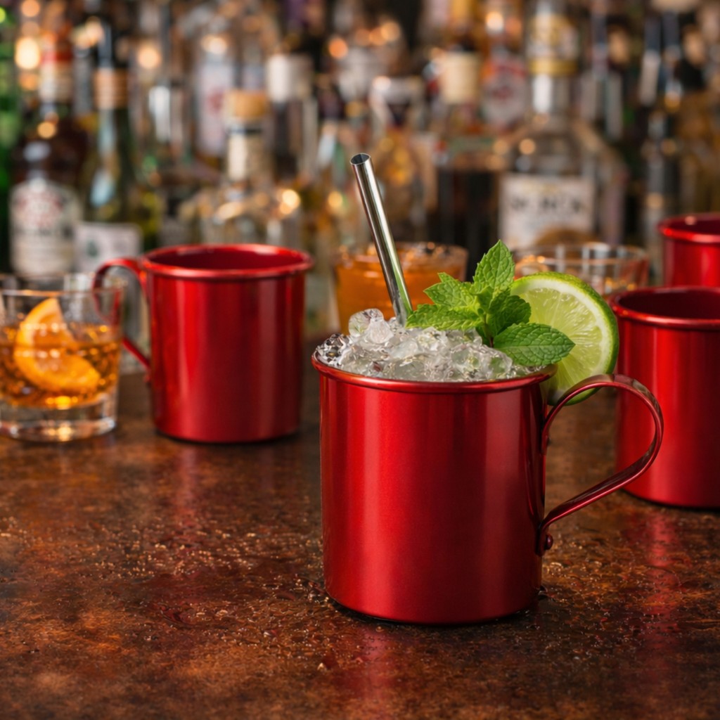Caneca Copo Moscow Mule Alumínio Vermelha 250ml