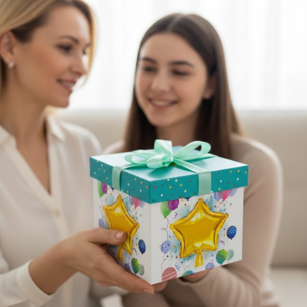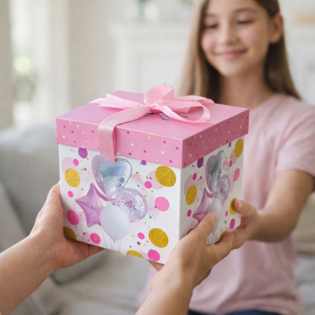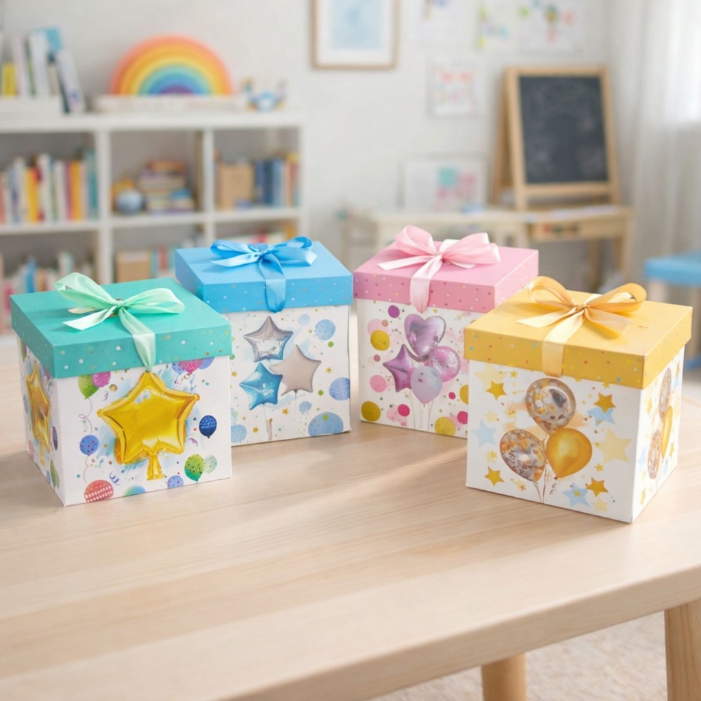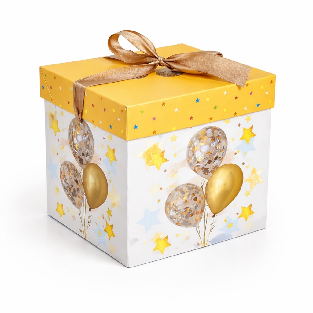 Caixa De Presente Média 22x22x22 Com Laço - Aniversário Festa Balões Felicidades Comemoração