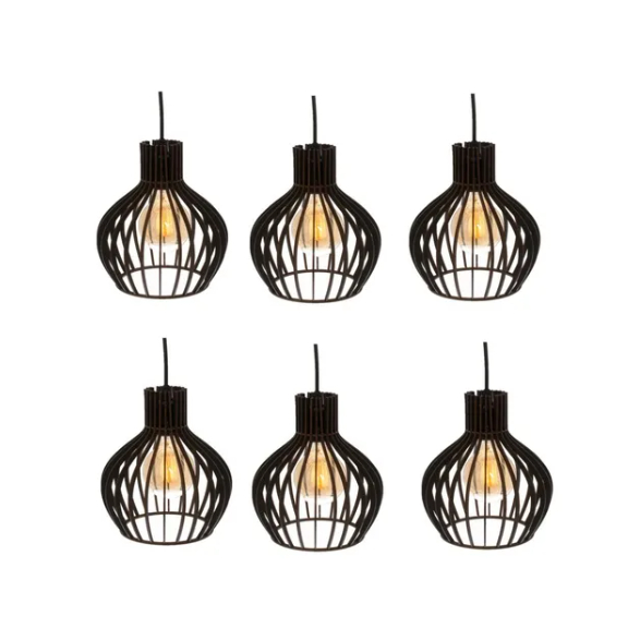 Kit 6 Luminarias De Teto Pendentes Balcão Bancada Cozinha Varanda Cor Preto Com Fiação - 6ppp