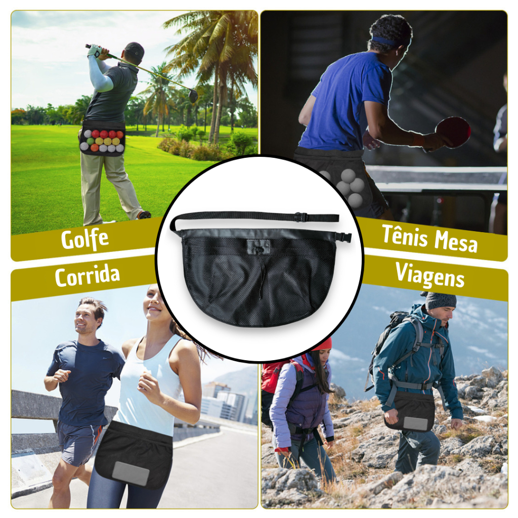 Bolsa Cintura para Bolas Bolinhas Bag Beach Tênis Ajustável Frescobol Ping Pong Pochete Bag