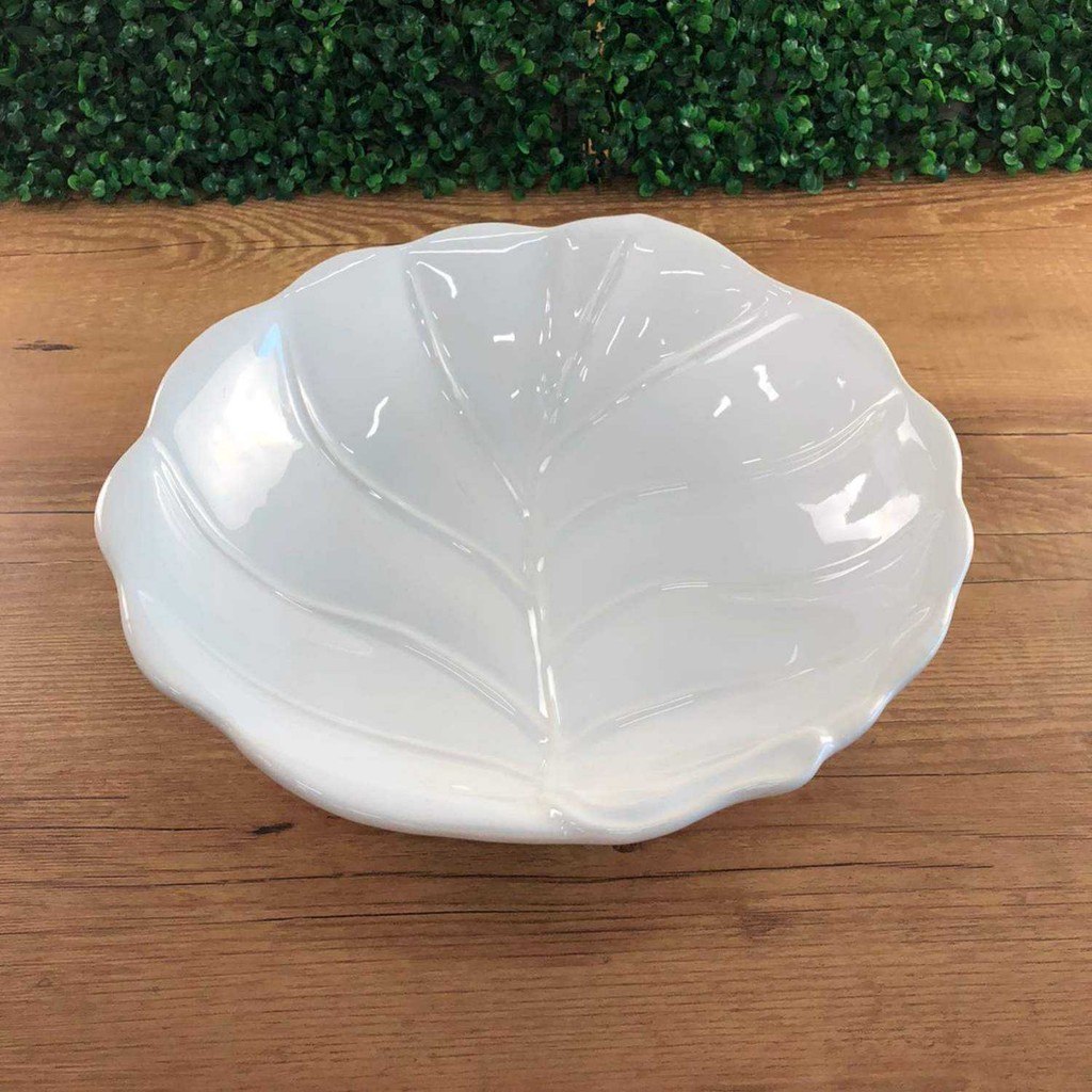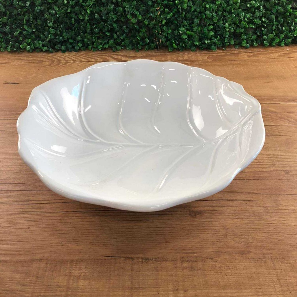 Tigela Grande Branca Folha Funda Decorada Cerâmica Scalla