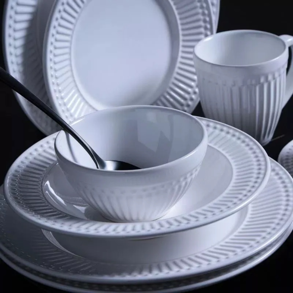 Conjunto 6 Prato Raso e 6 Pratos Fundo Roma Branco 12 Peças 2ª Linha Porto Brasil
