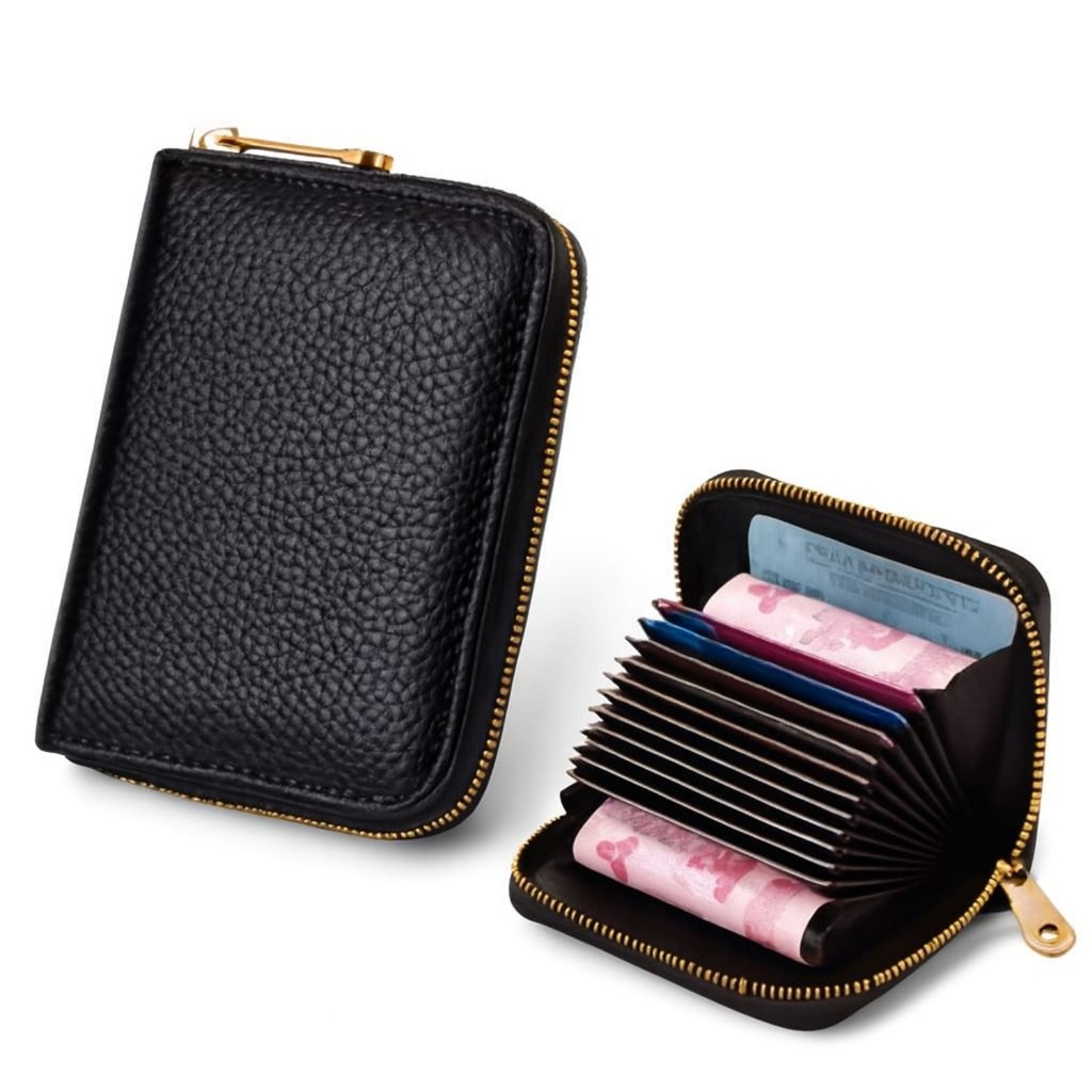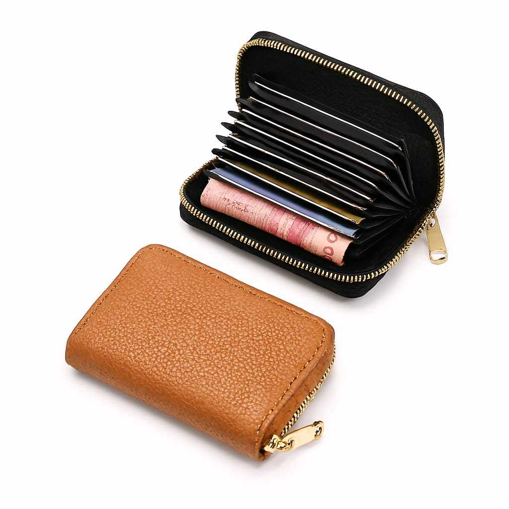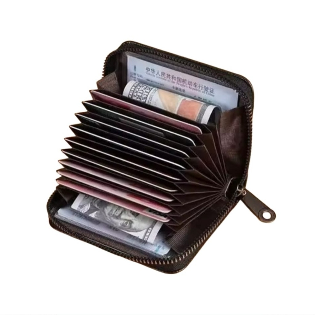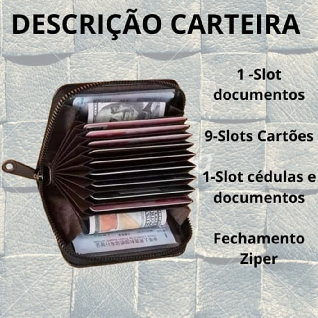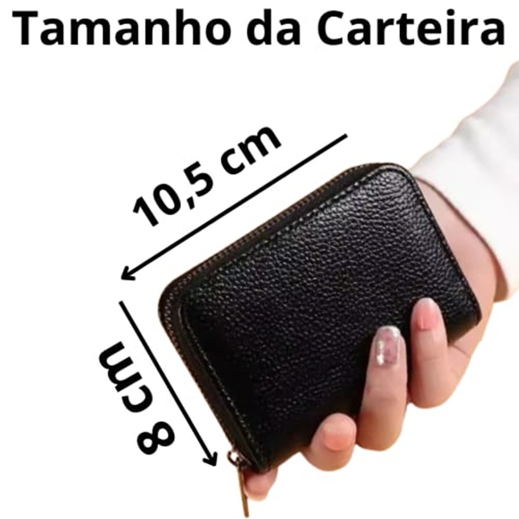 Carteira Porta Cartão Sanfona com Ziper em Couro Pequena