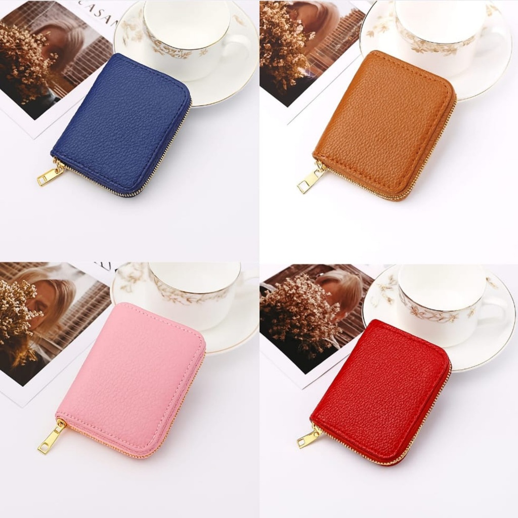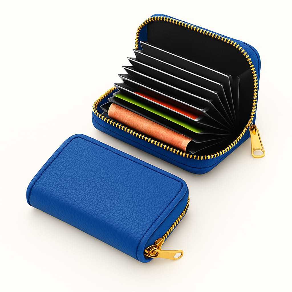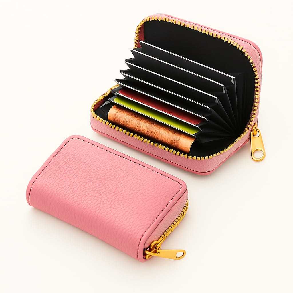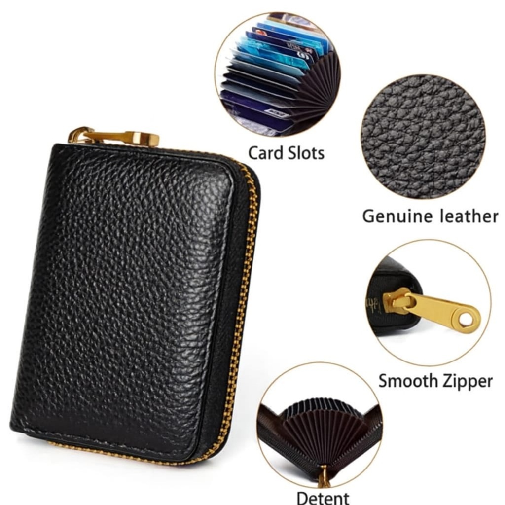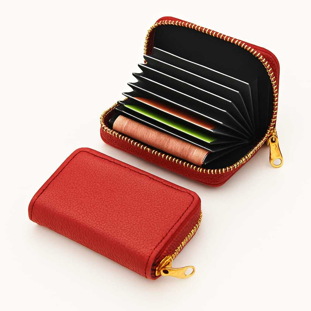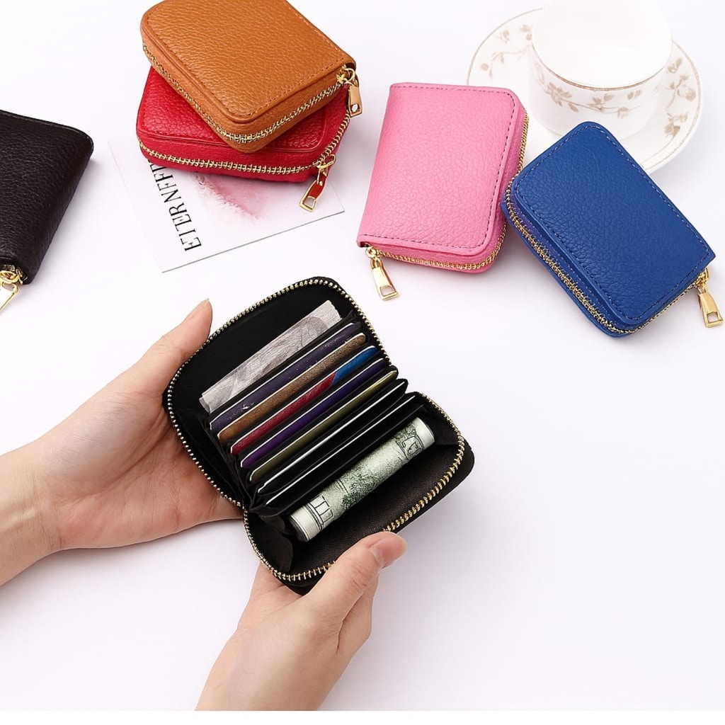 Carteira Porta Cartão Sanfona com Ziper em Couro Pequena