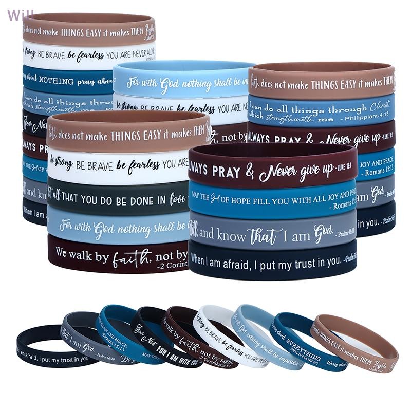 36 Peças Pulseiras De Silicone Religiosas Em Massa Borracha Da Bíblia Coloridas Inspiradoras Cristãs