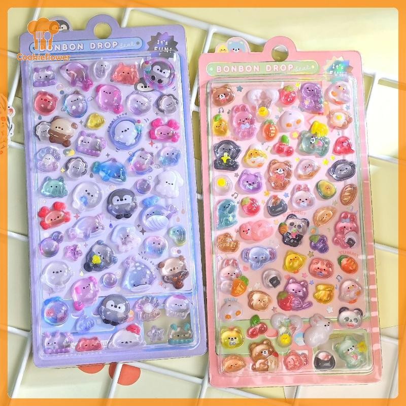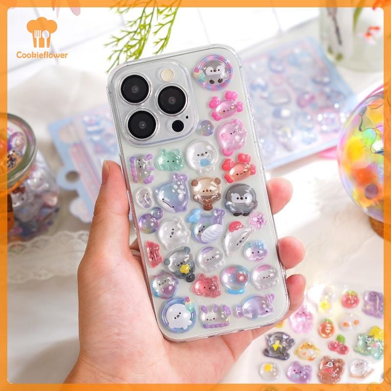 CKFR 4 Folhas Dos Desenhos Animados Animal Fantasma Decalques Estéticos 3D Alívio Geléia Adesivos DIY Caso De Telefone D