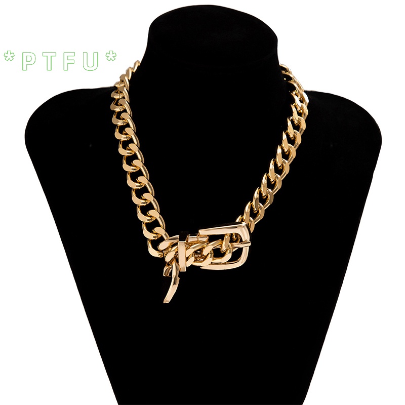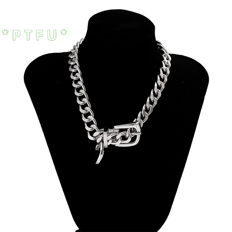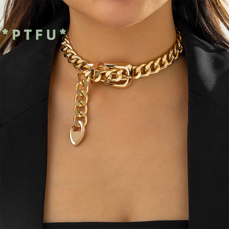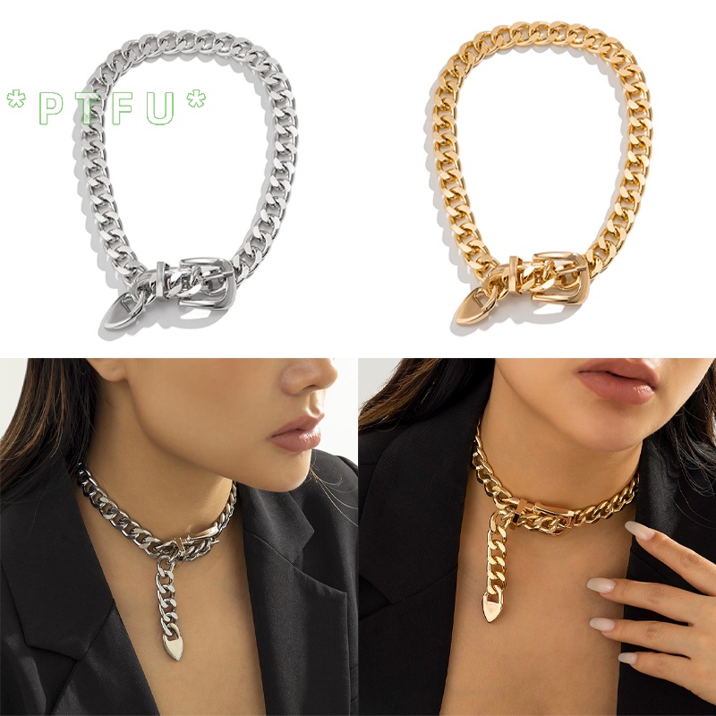 PTFU > Moda Hip Hop Punk Metal Cinto De Fivela Gargantilha De Corrente Para Mulheres Colares De Clavícula Grossa