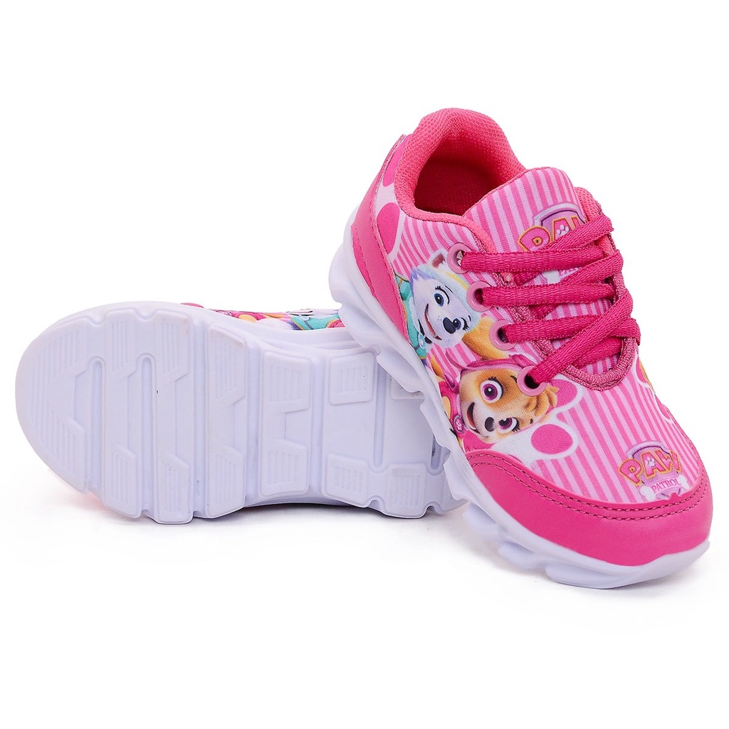 Tenis Infantil Menina Patrulha Canina Led Luzinha Escola Casual Desenho Personagens Promoção