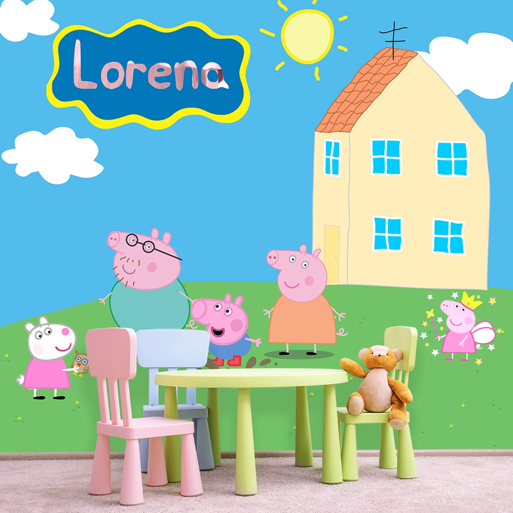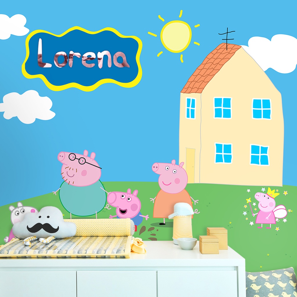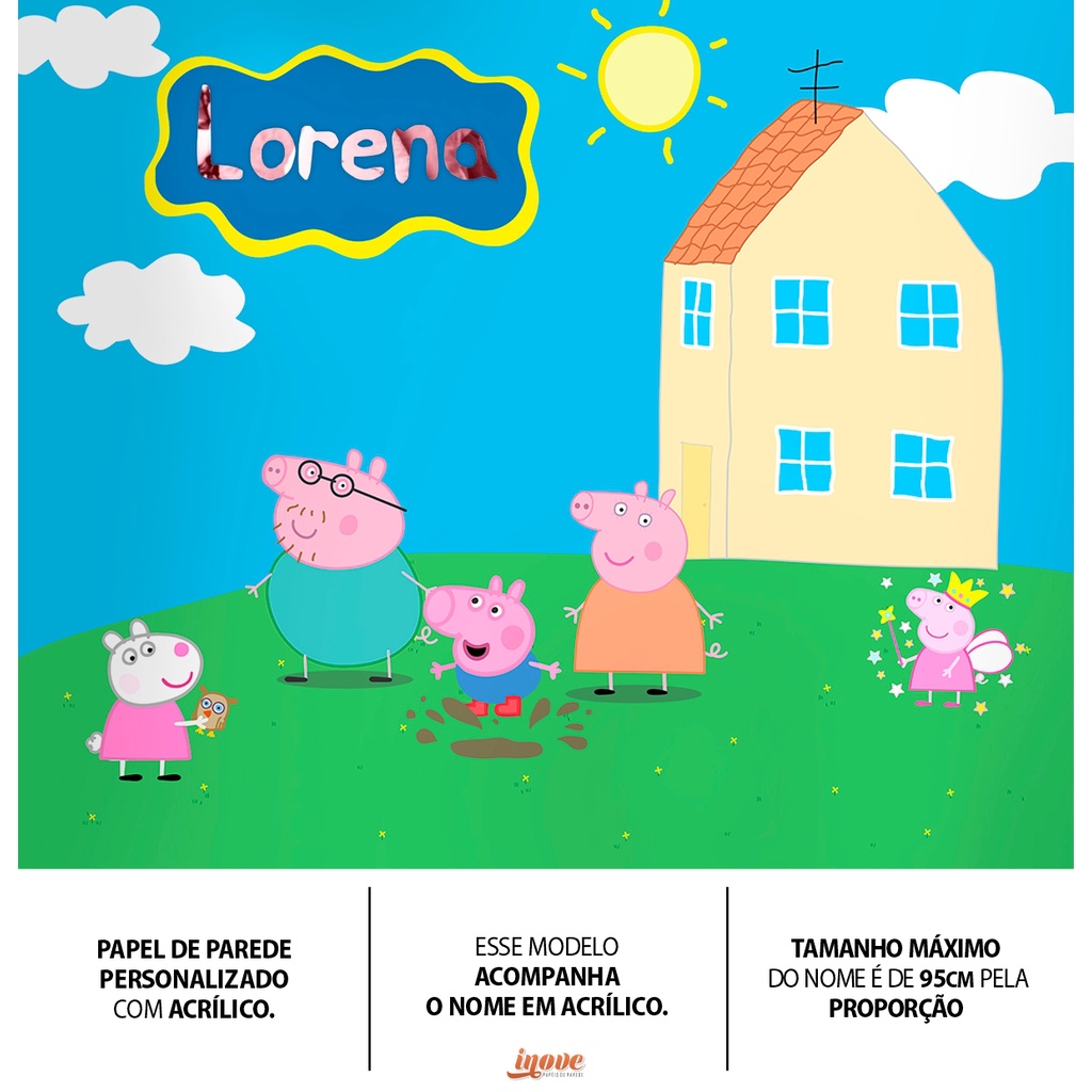 Papel de Parede Personalizado Peppa Pig Com Acrílico Rose