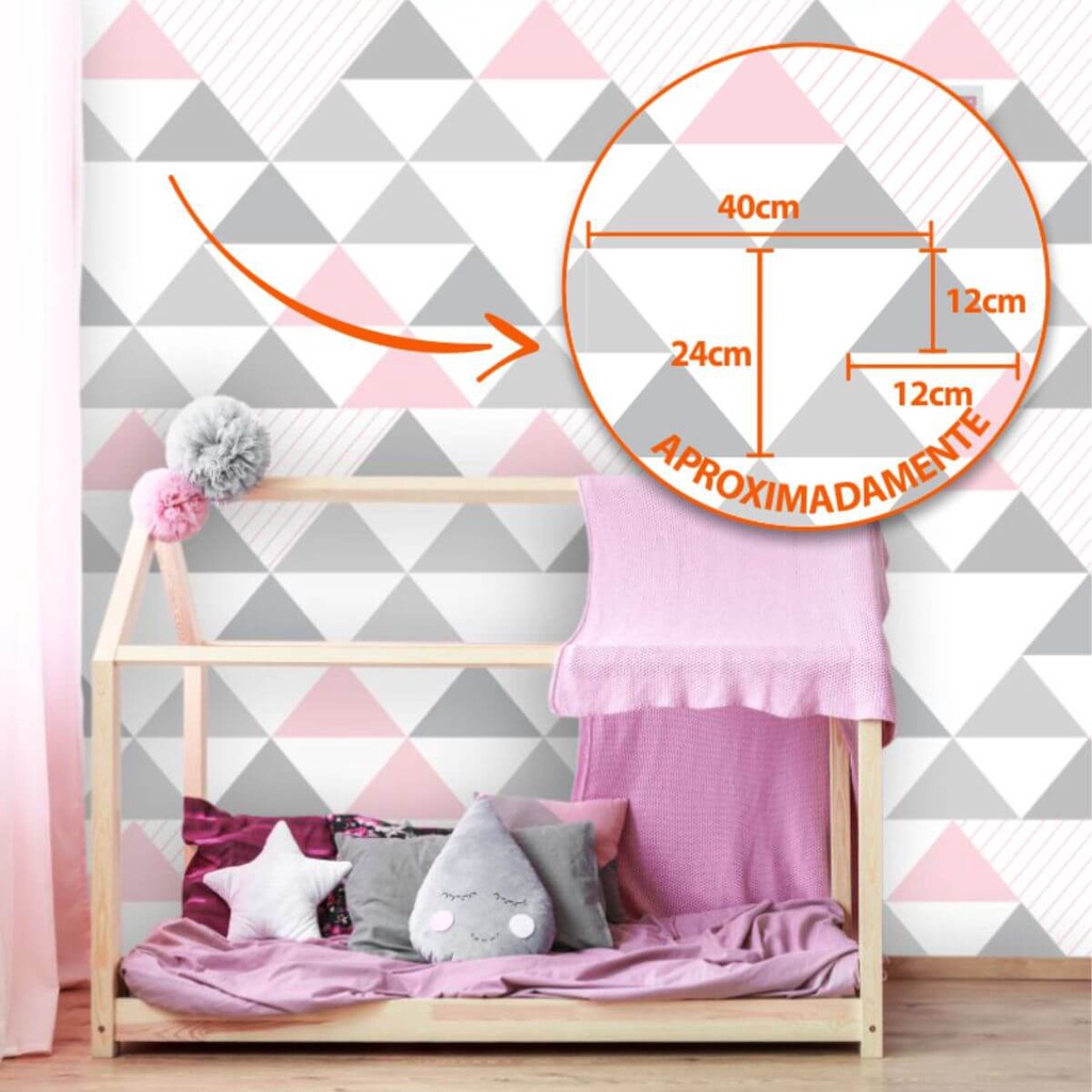 Papel de Parede Geometrico Triangulos Cinza e Rosa Decoração Quarto 50x50