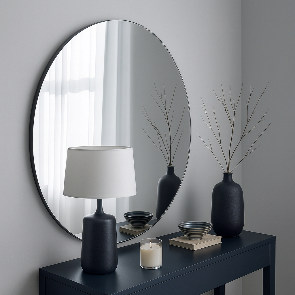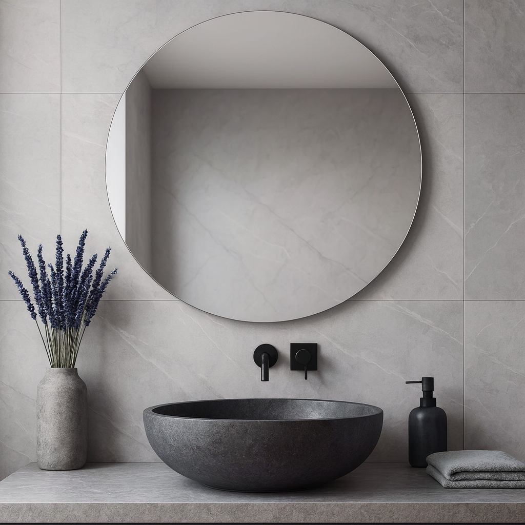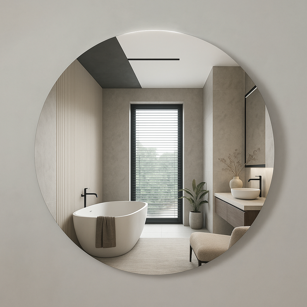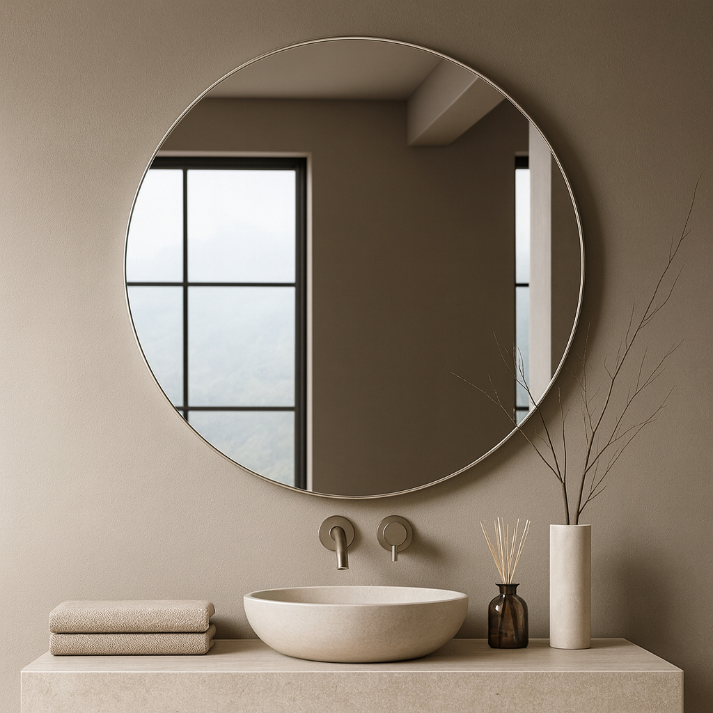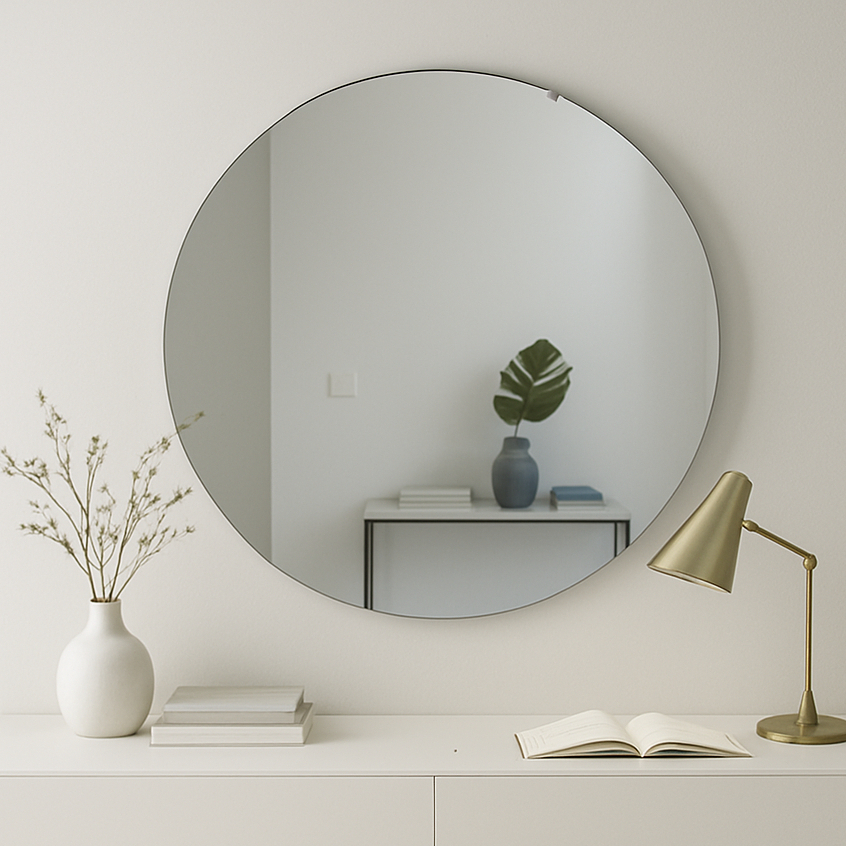 Espelho Redondo 50cm de Vidro Lapidado Para Banheiro Sala Quarto Com Dupla Face