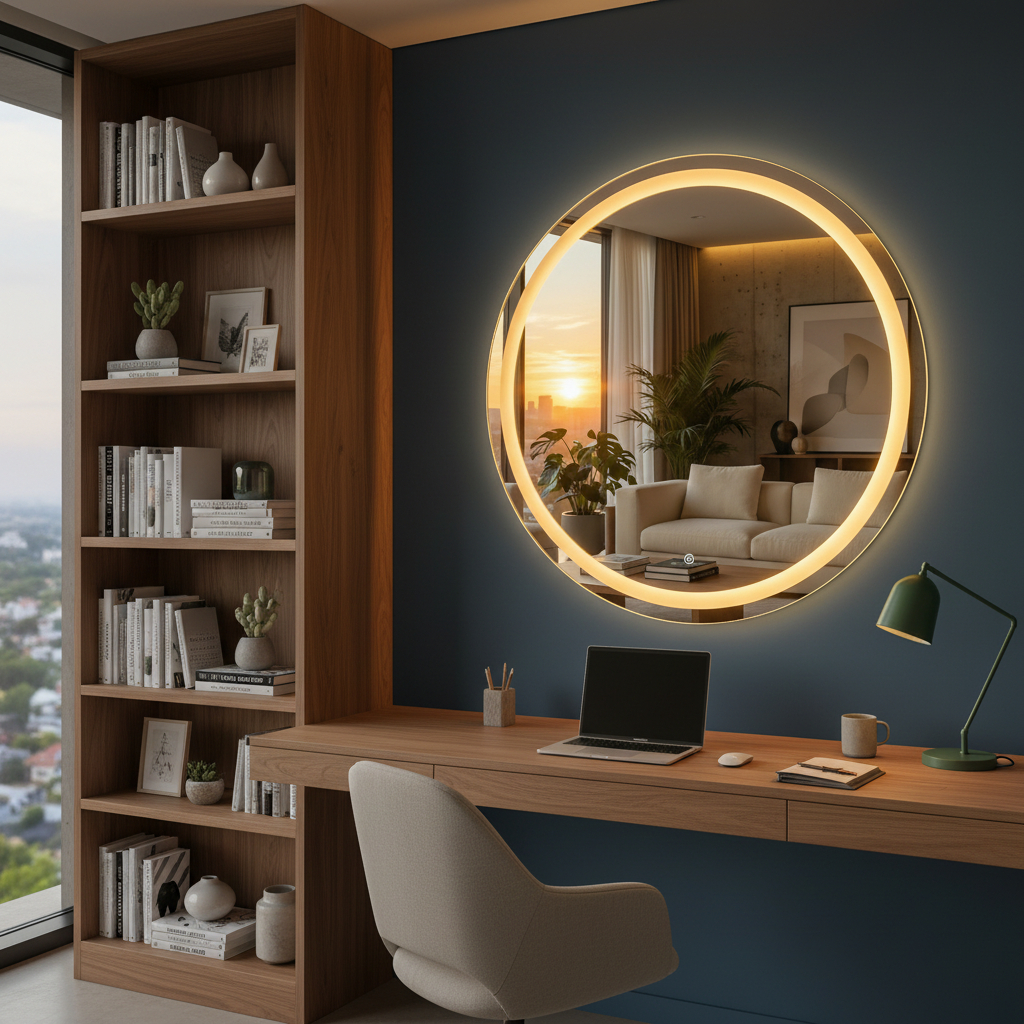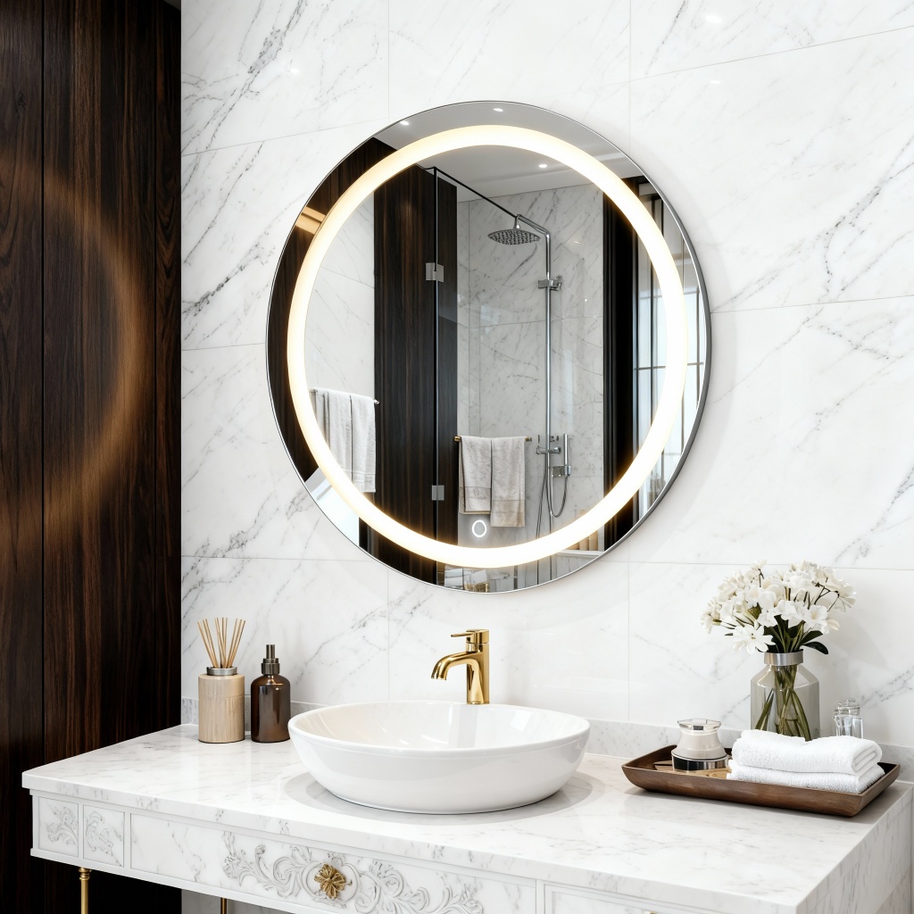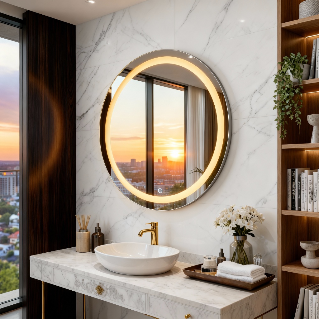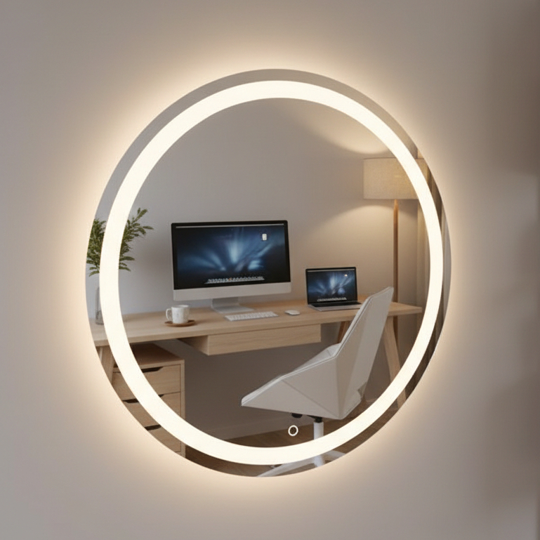 Espelho Redondo Jateado com Led e botão Touch para Maquiagem Penteadeira Banheiro Lavabo