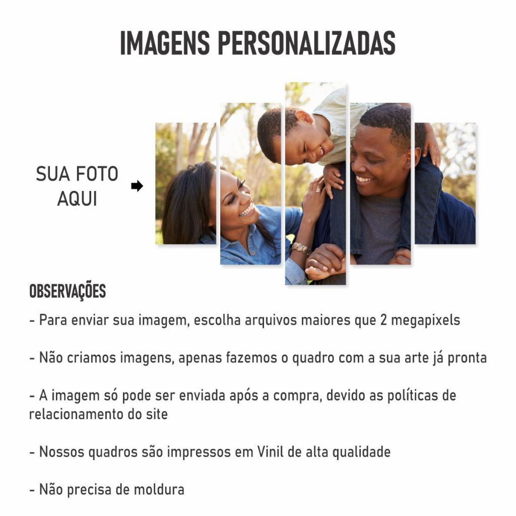 Quadro Personalizado Unidades - COM SUA FOTO 80X50 cm 5 Peças Decorativo