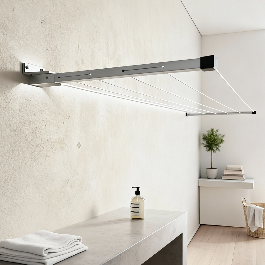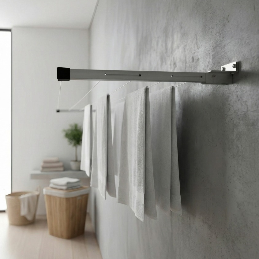 Varal de Parede Retrátil em Alumínio Reforçado para Roupas – Suporta até 80kg.