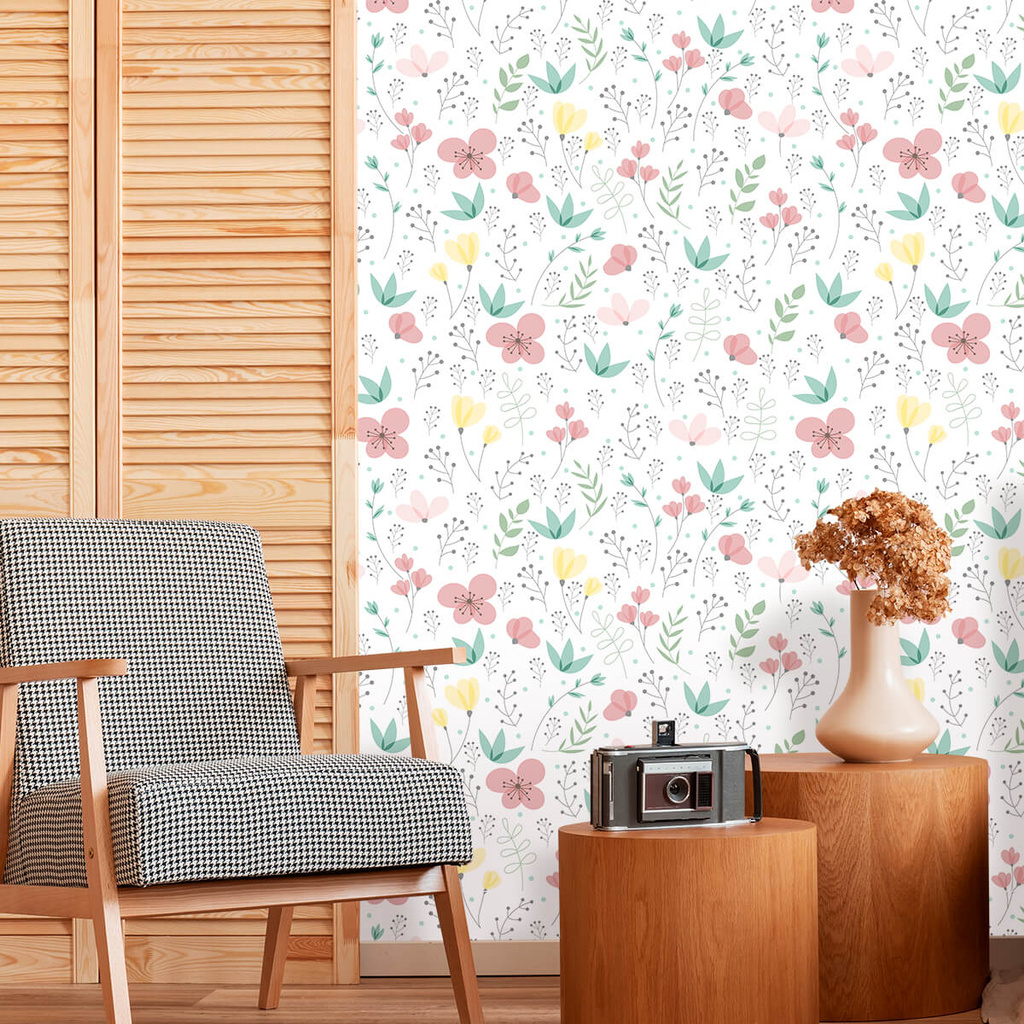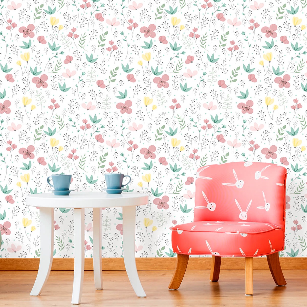 Papel de Parede Vinil Autocolante Floral Soft Decoração Inove
