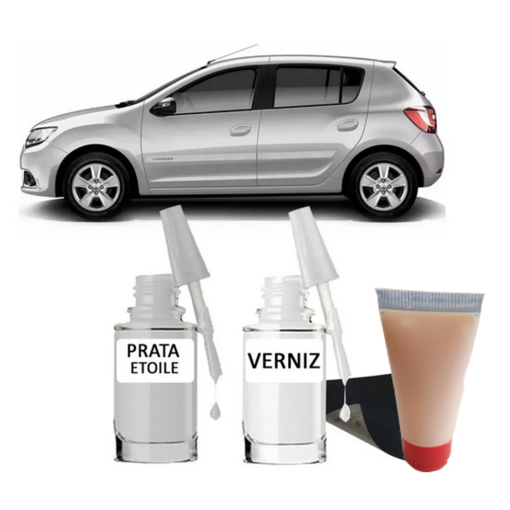 Tinta Tira Risco Automotivo Renault Sandero Prata 10ml + Cera De Polir 15ml Para Polimento