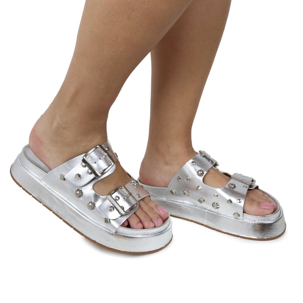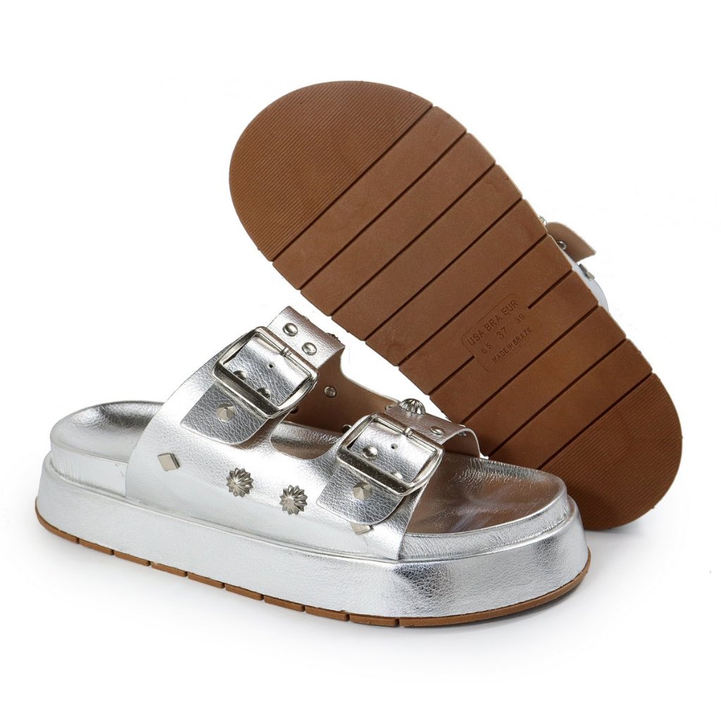 Papete Feminina Sandalia com Fivela e Detalhes Apliques