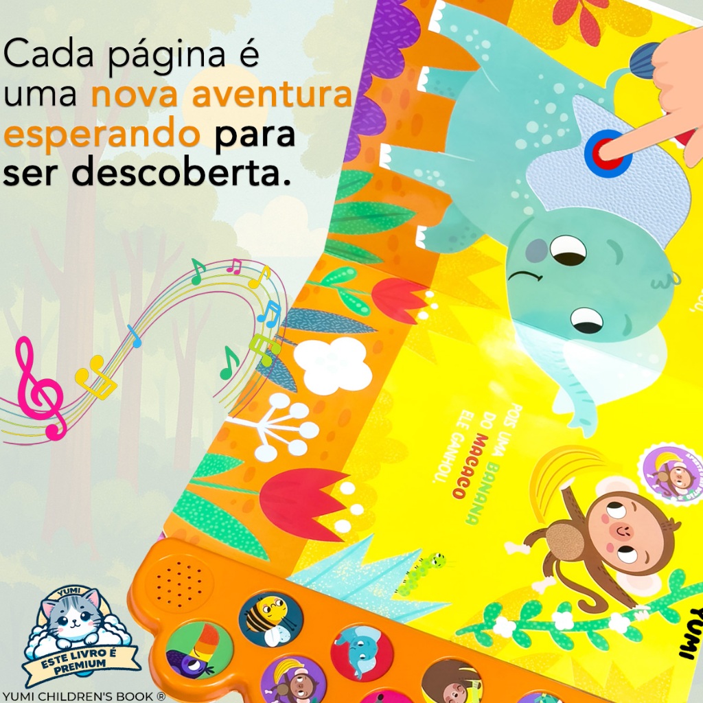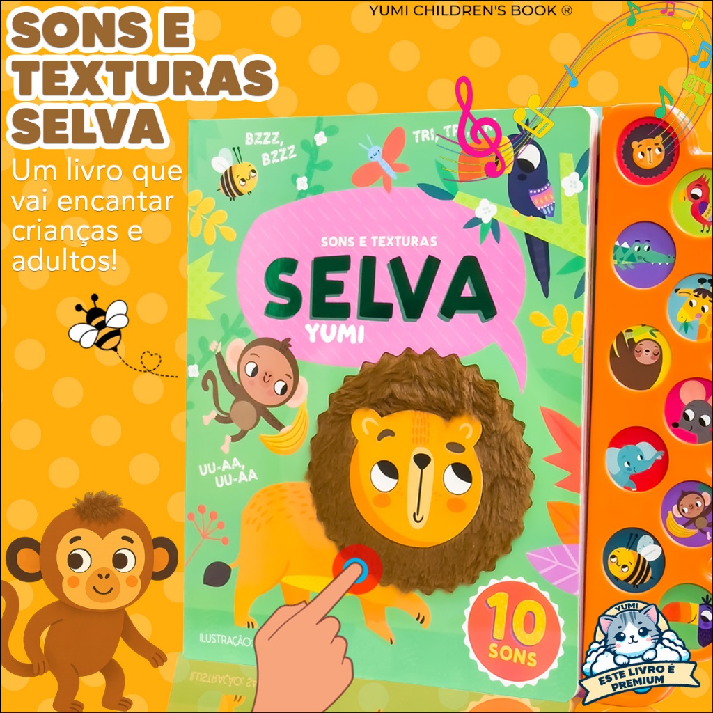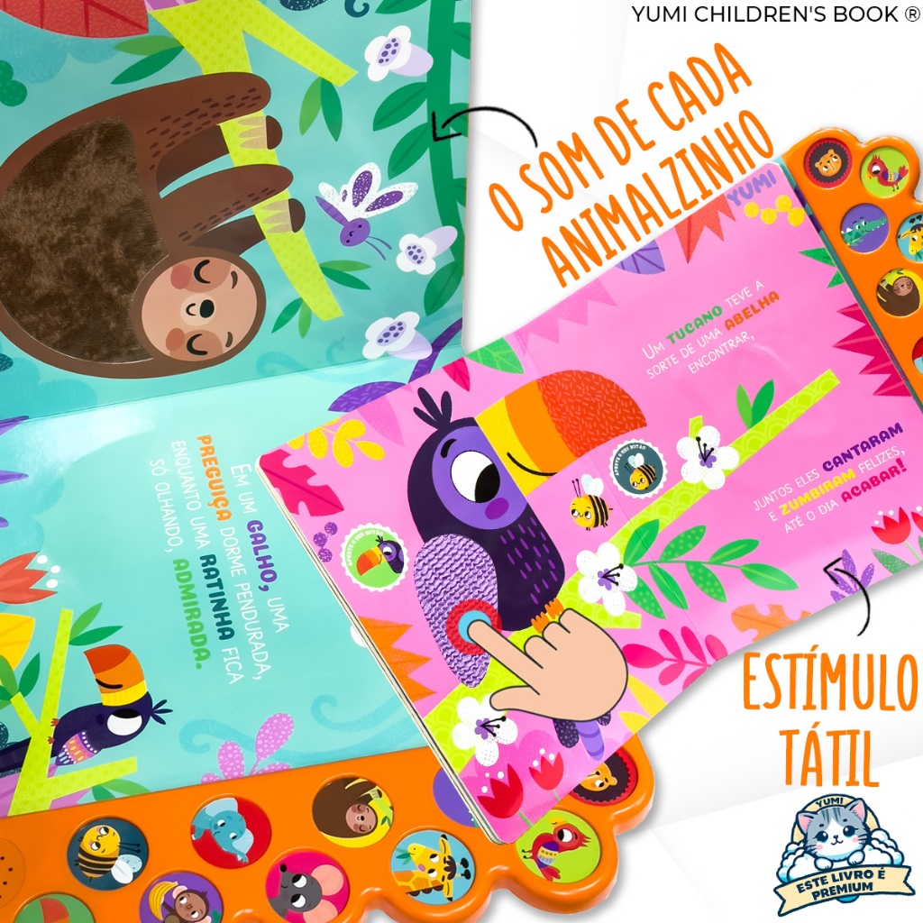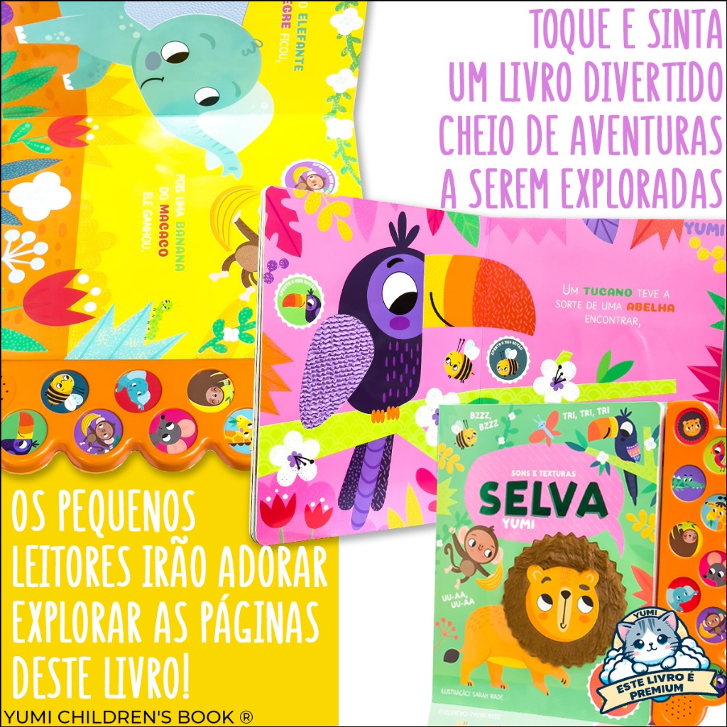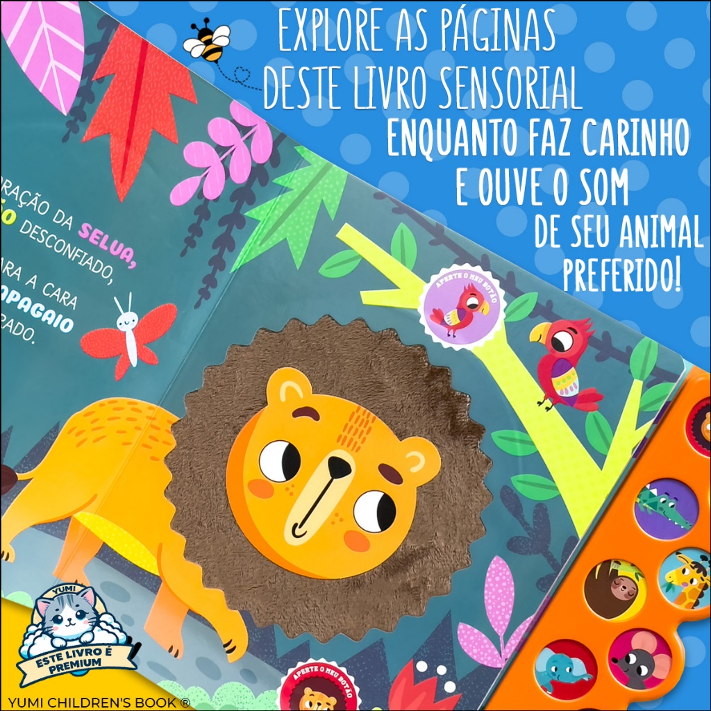 Livro Sonoro : Sons E Texturas Animais Da Selva | Sinta E Ouça Os Bichos Com 10 Sons - Livro Grande Ilustrado Premium