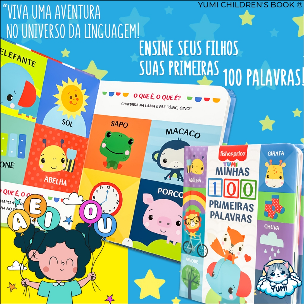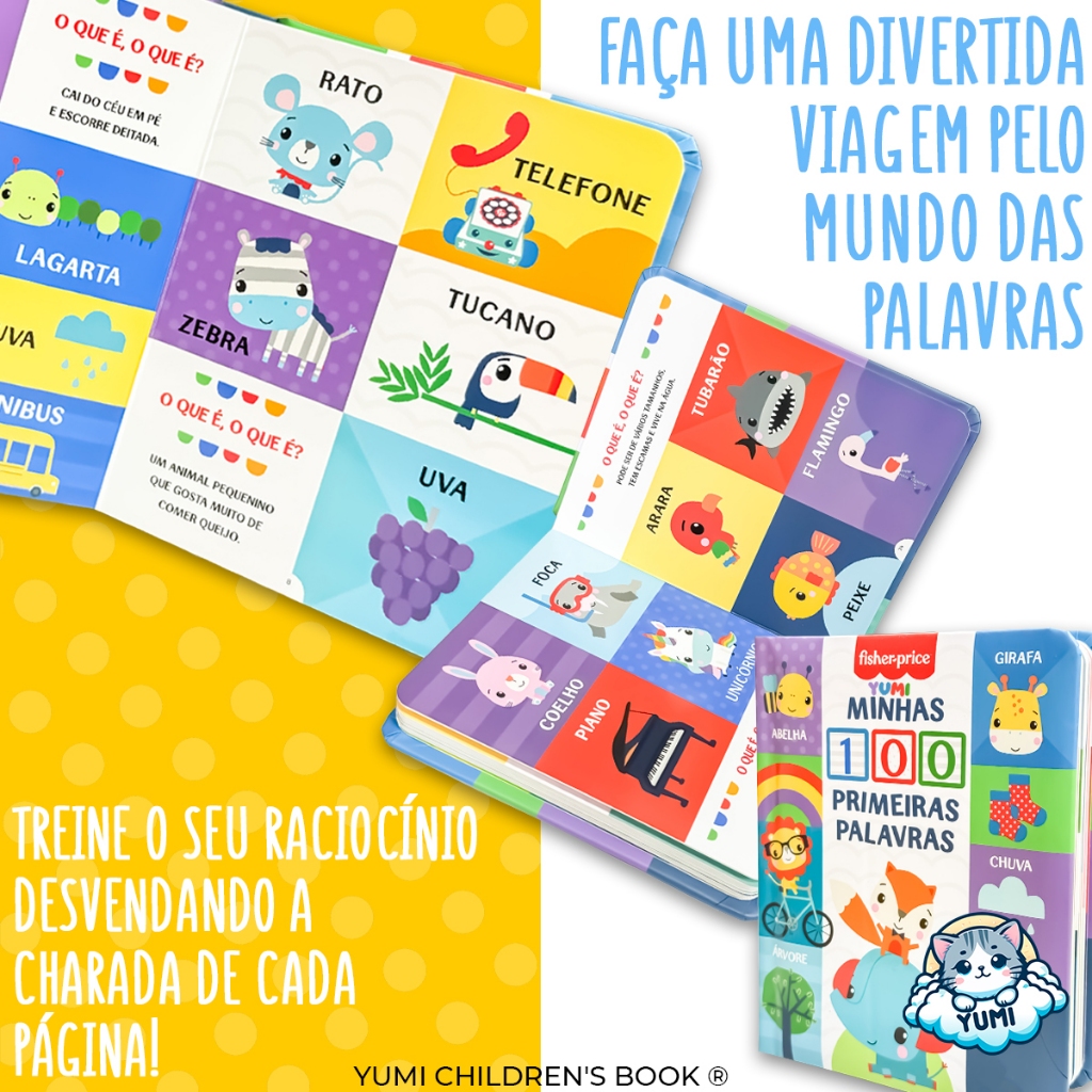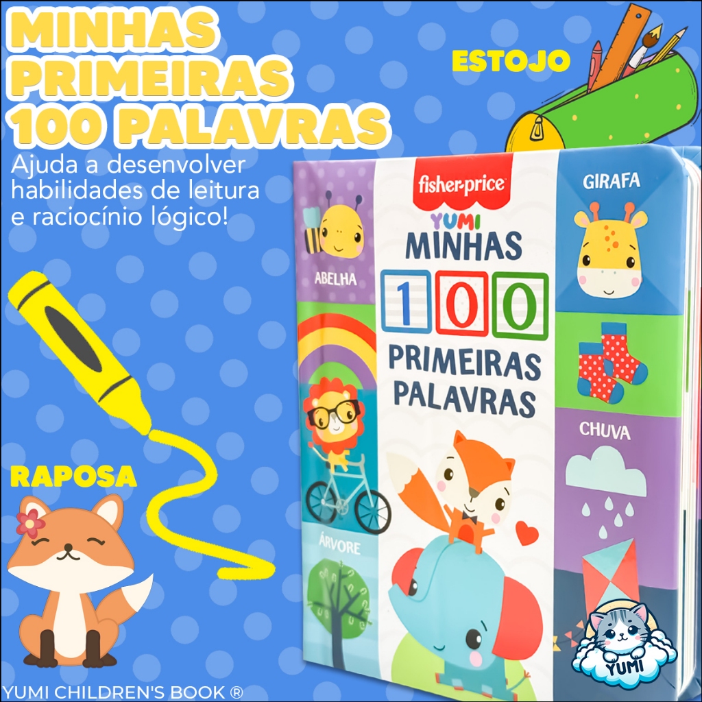 Livro Interativo Infantil : Minhas 100 Primeiras Palavras Fisher Price | Com Capa E Páginas Duras - Para Crianças