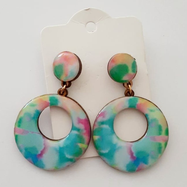 Brinco madeira resina colorido verão redondo
