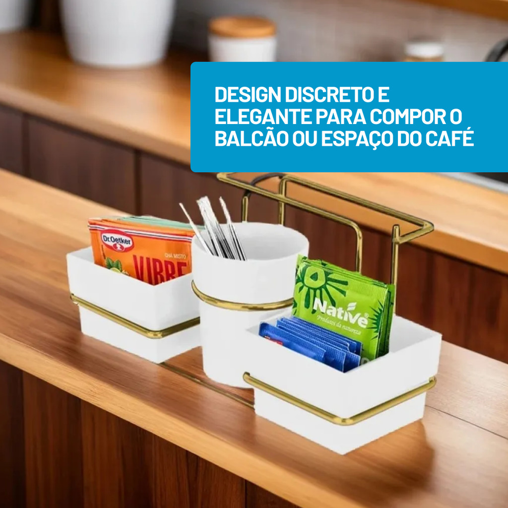 Organizador suporte para Sachês chá açucar Mexedor e Guardanapos Dourado branco Future 1224BCD