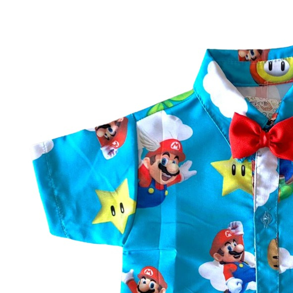 Camisa Temática MARIO. infantil social menino com gravata