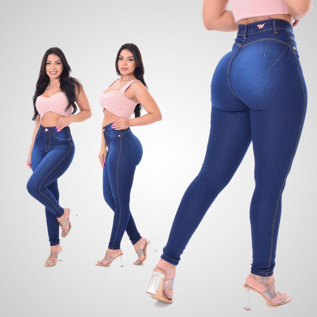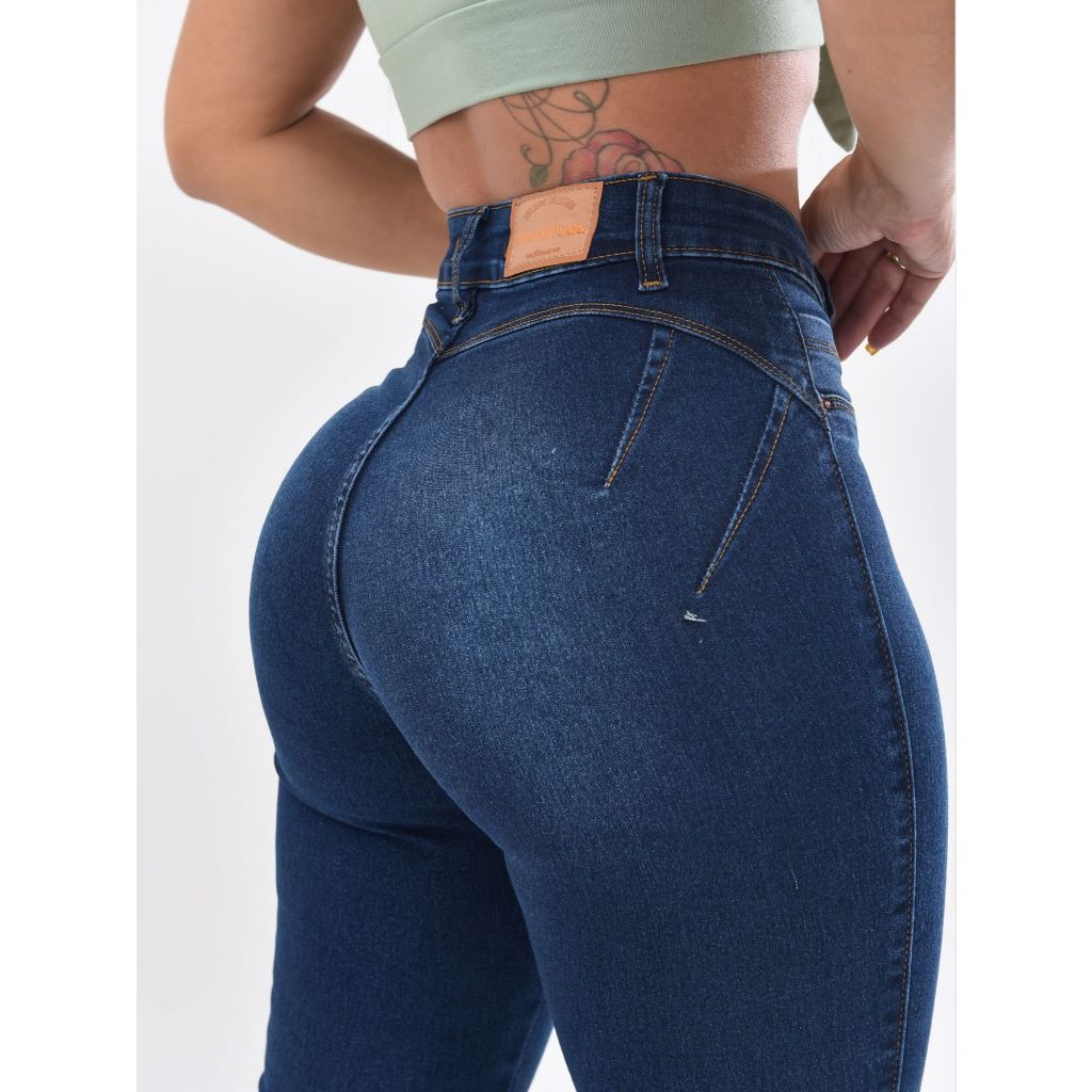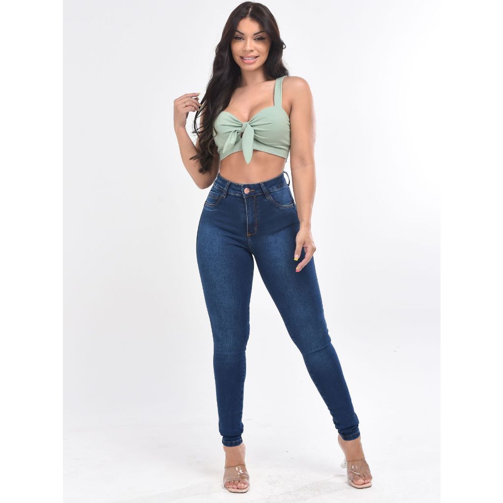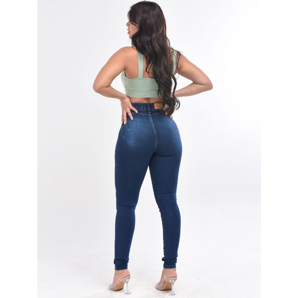 Calça Jeans Feminina Sem Bolso Efeito Legging Cintura Alta