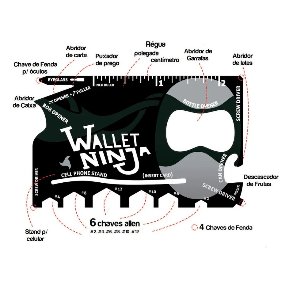 Cartão Wallet Ninja Ferramentas 18 Em 1