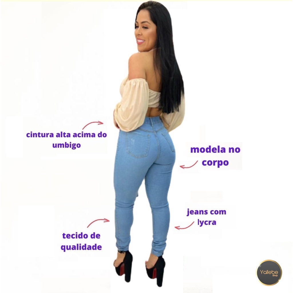 kit 4 Calças Jeans Feminina Skinny Cós Alto que empina Hot Pants Cintura Alta Com Lycra Strech