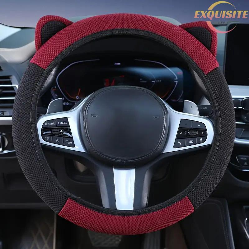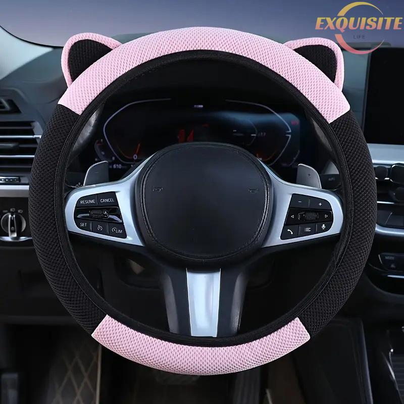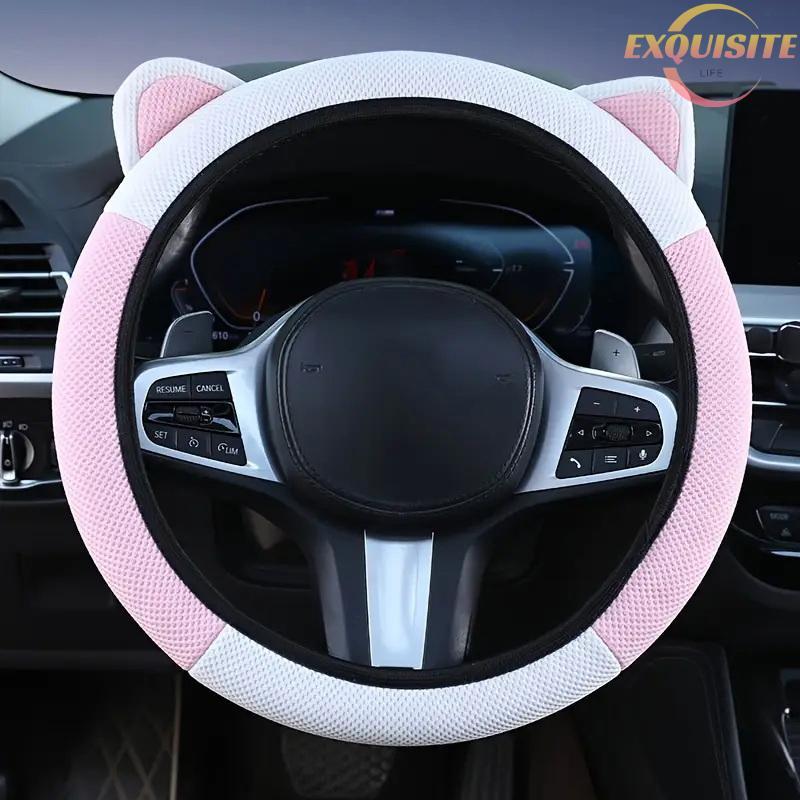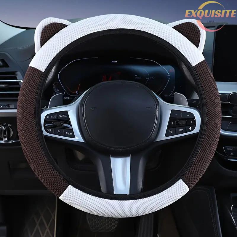 [EL] Capa De Volante De Carro Com Orelhas De Desenho Animado Antiderrapante Adequada Para Uma Variedade De Modelos Absor