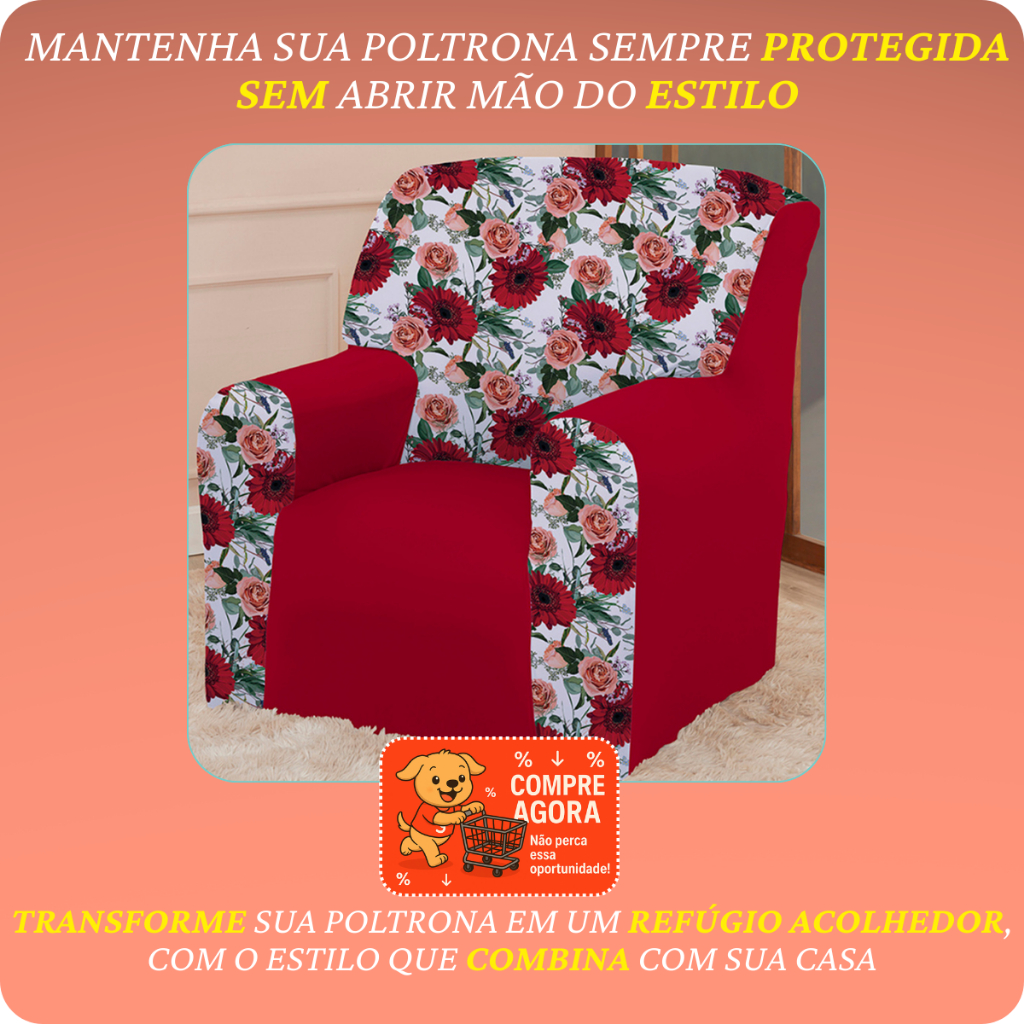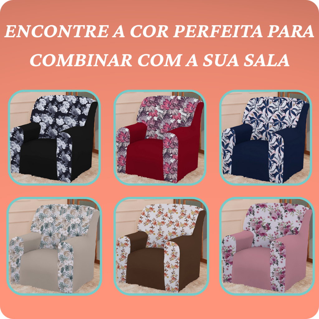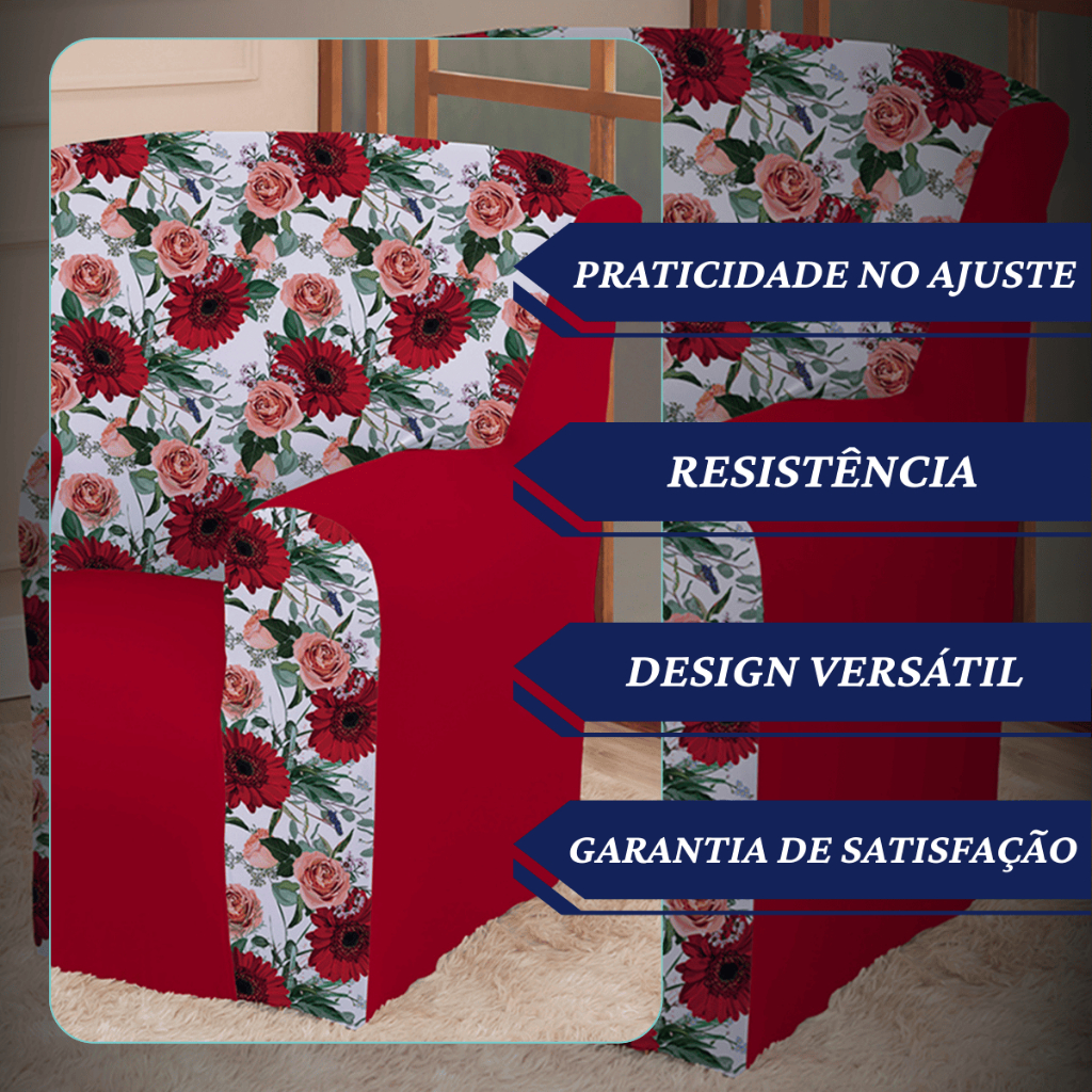 Capa Protetora p/ Poltrona do Papai Coladinha Mista Floral 1 Lugar Avulsa - Decoração Sala, Quarto
