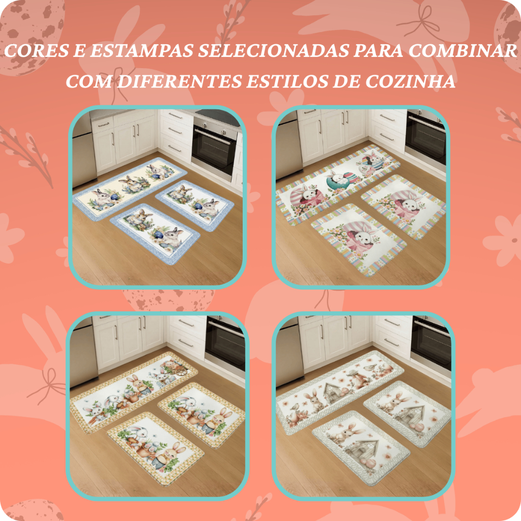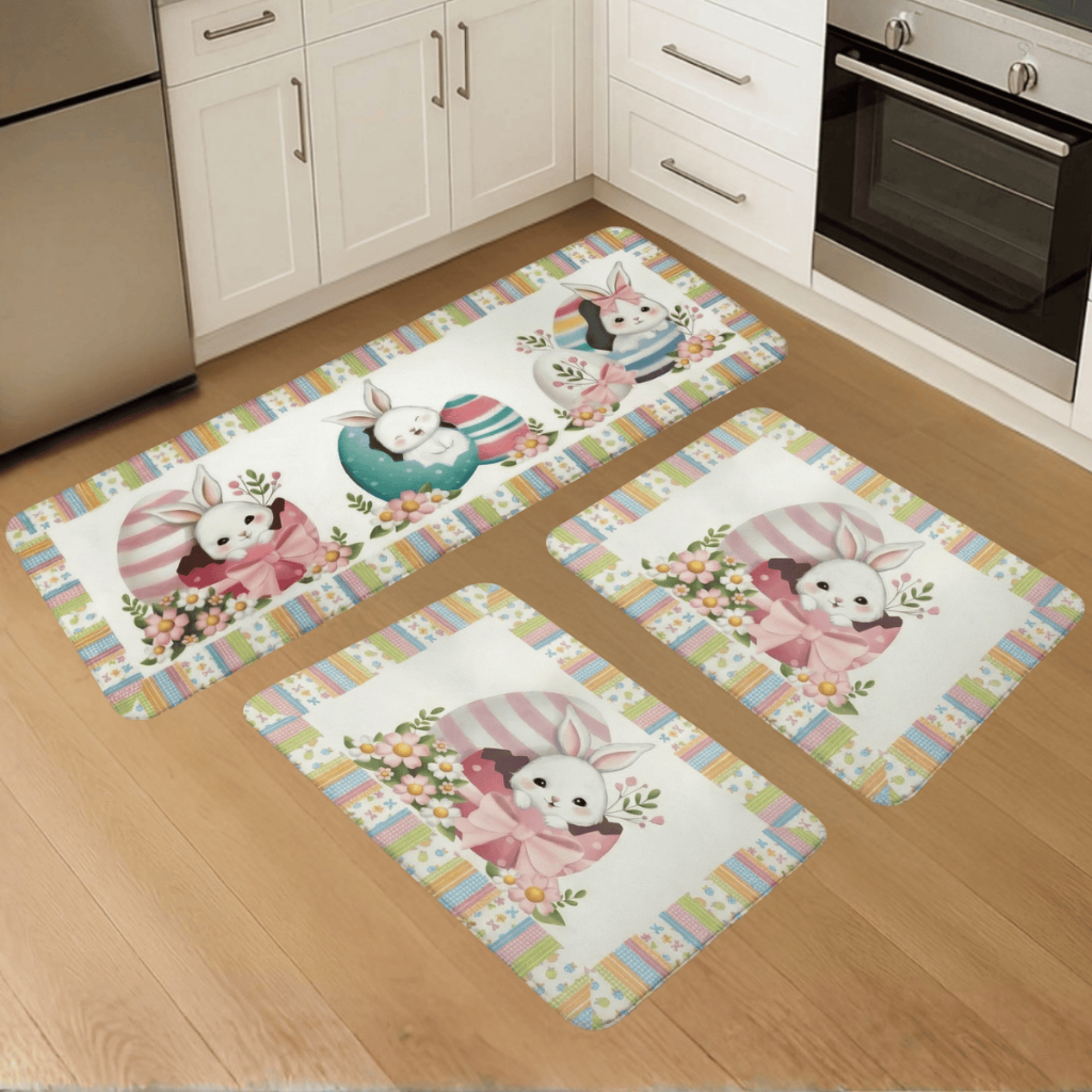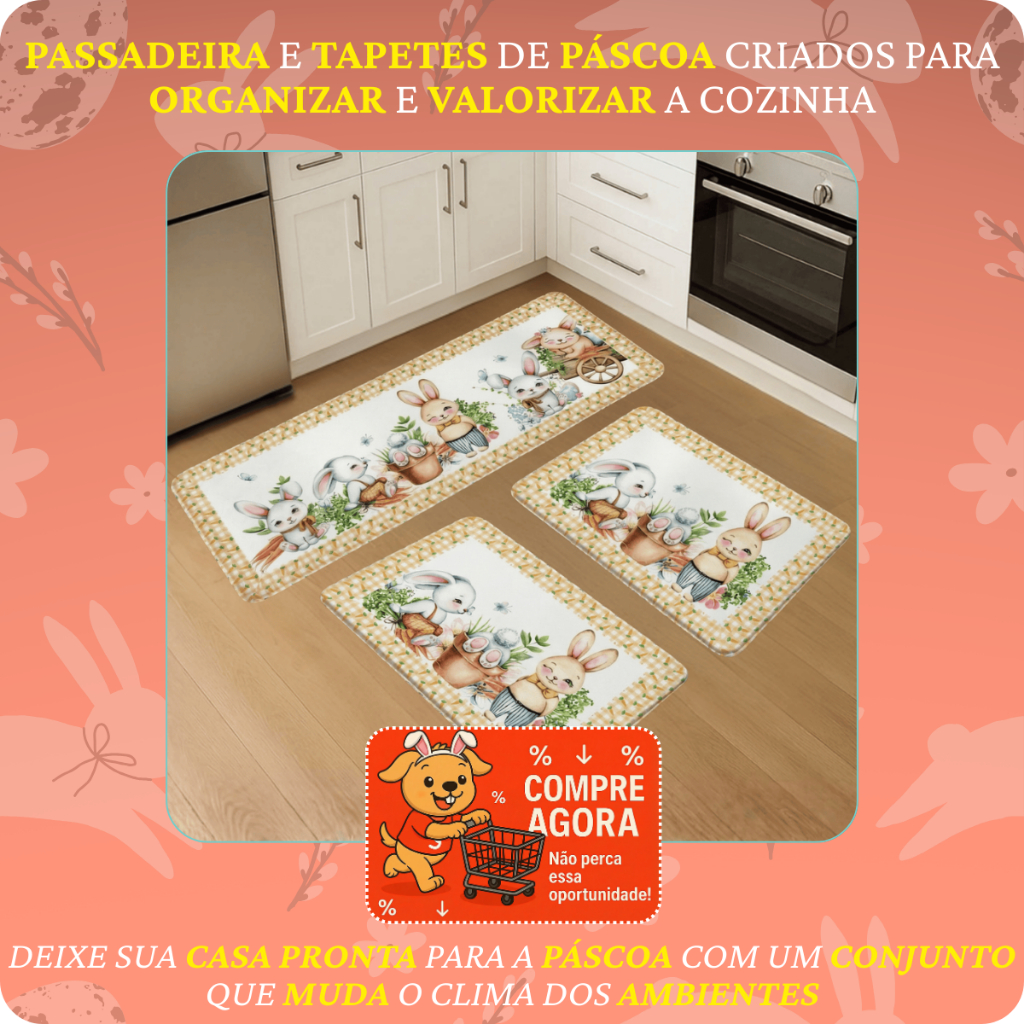 Kit 3 Pçs Tapete Passadeira Decorativo Pascoa Antiderrapante Resistente para Casa e Apartamento