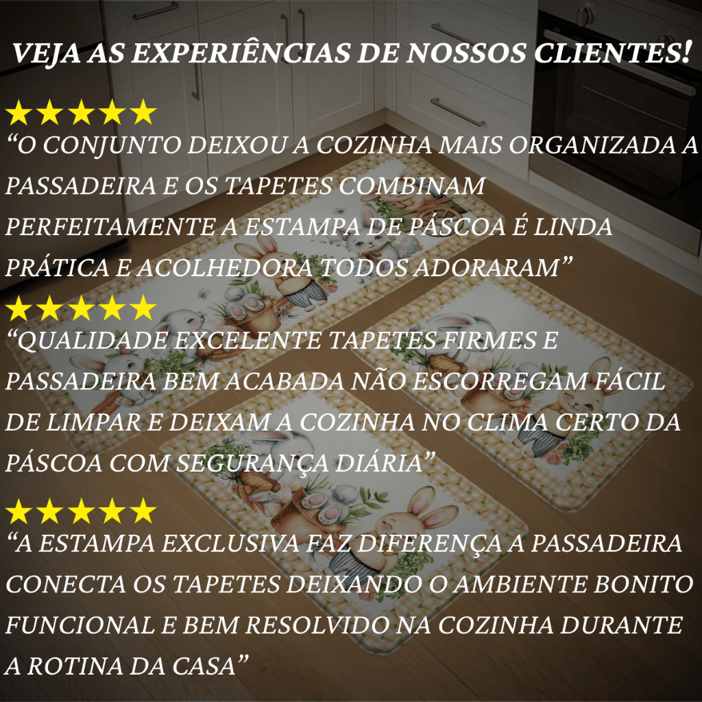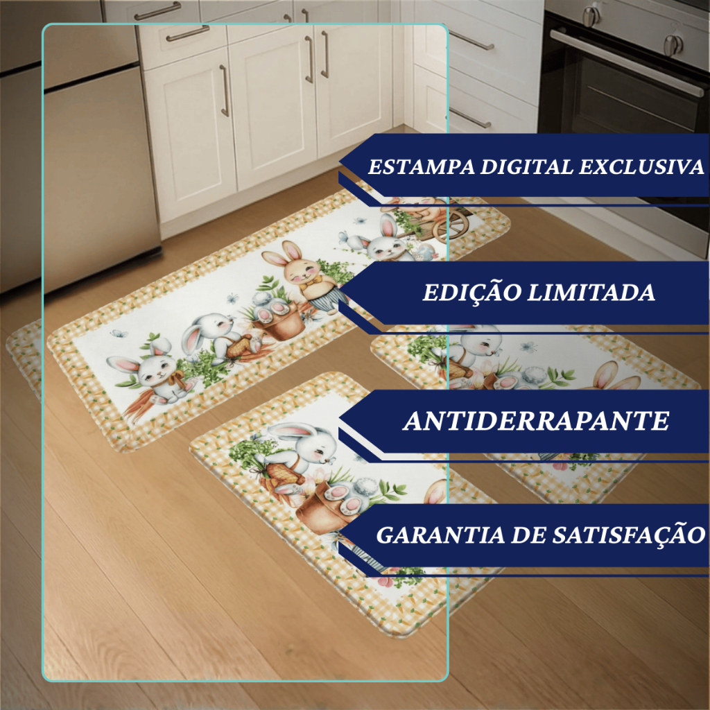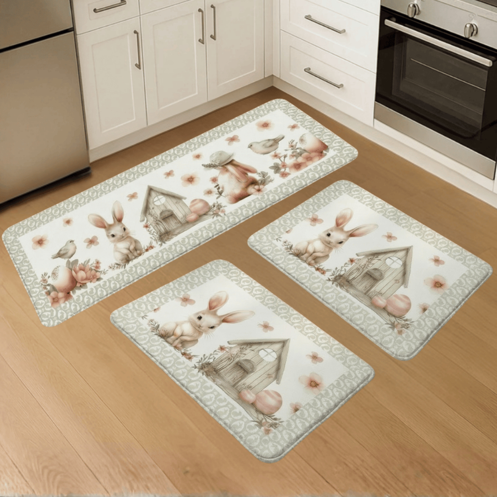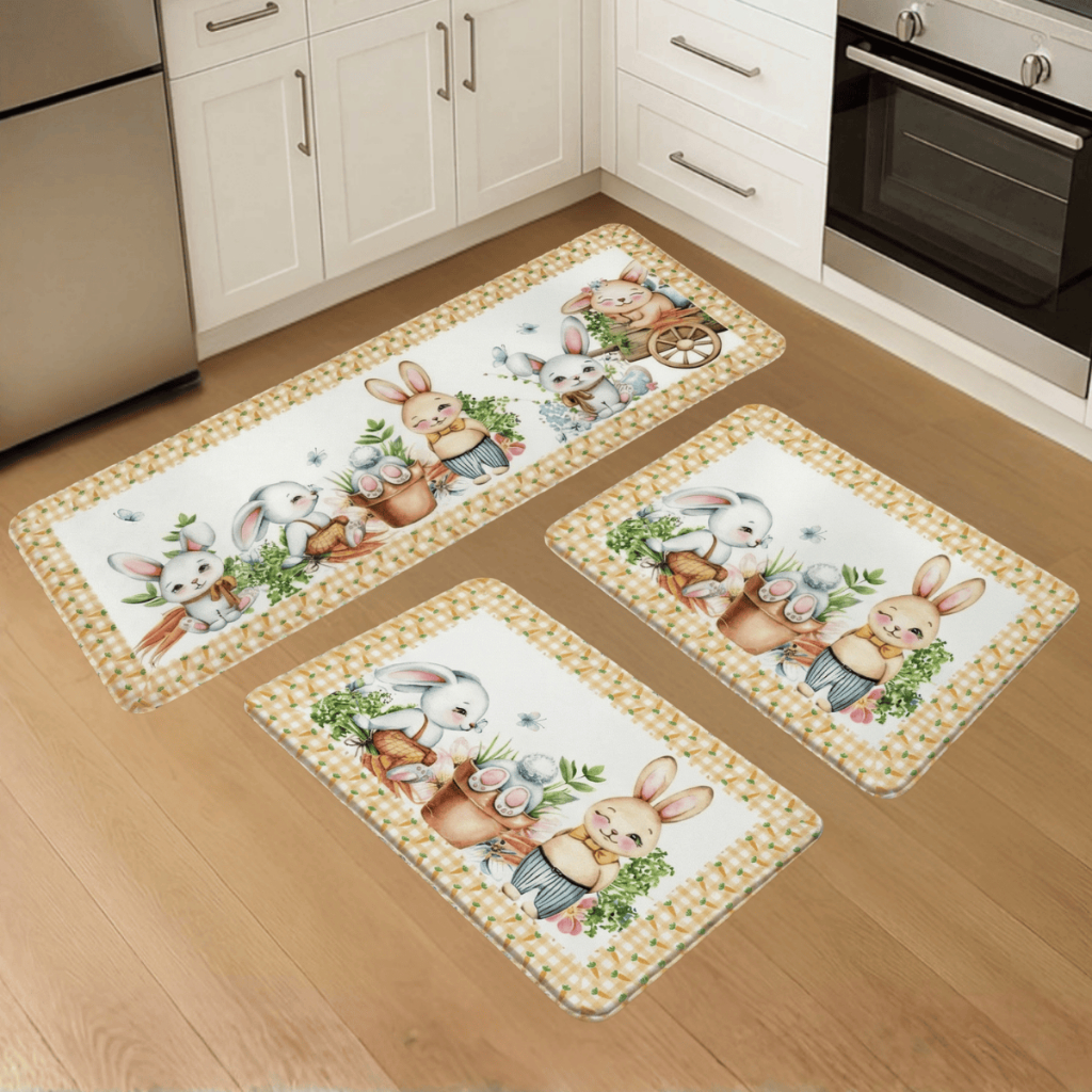 Kit 3 Pçs Tapete Passadeira Decorativo Pascoa Antiderrapante Resistente para Casa e Apartamento