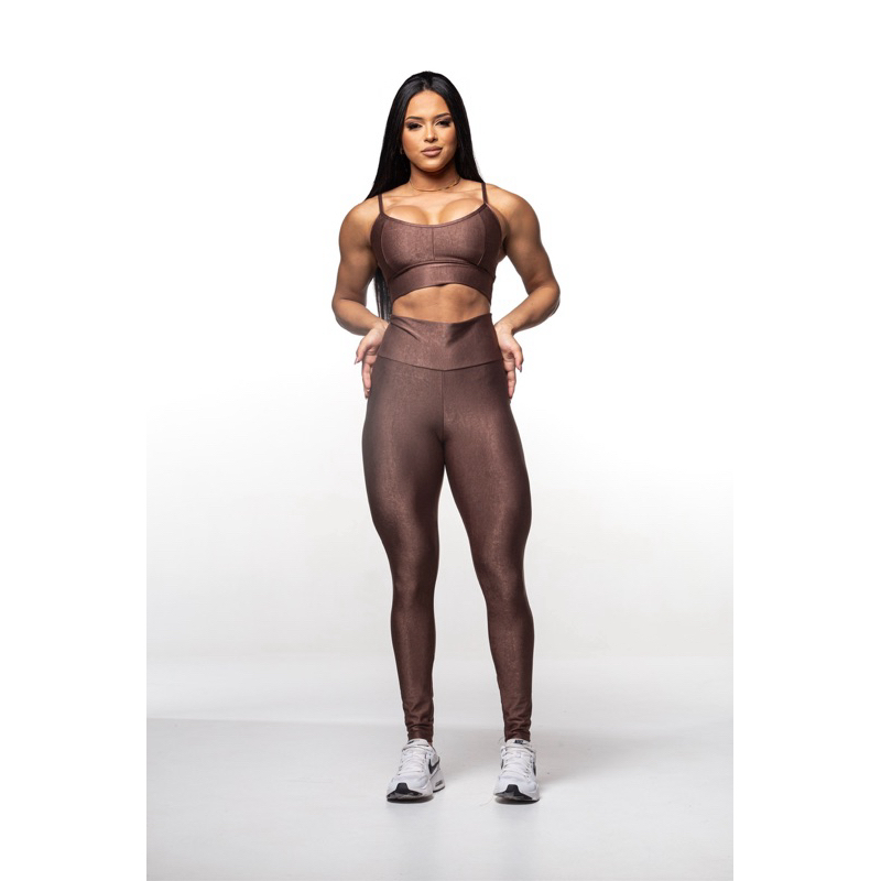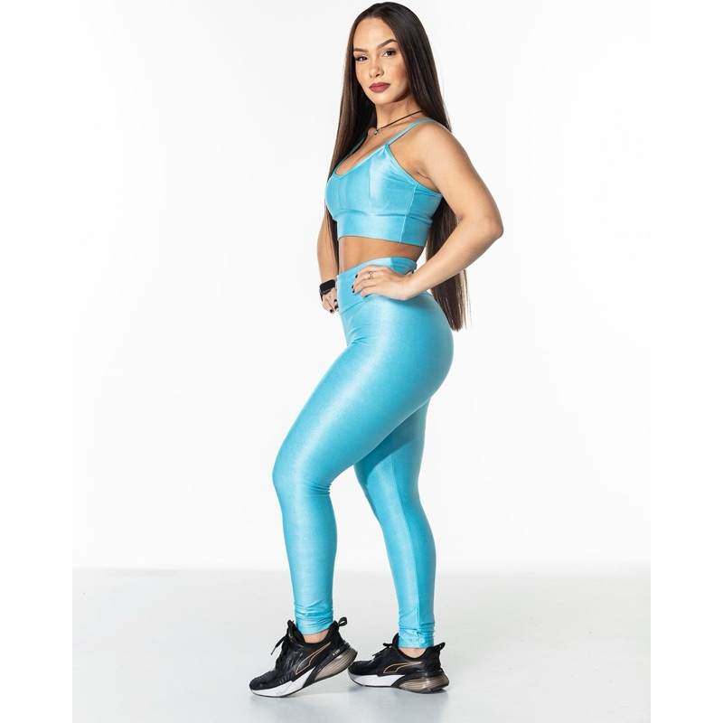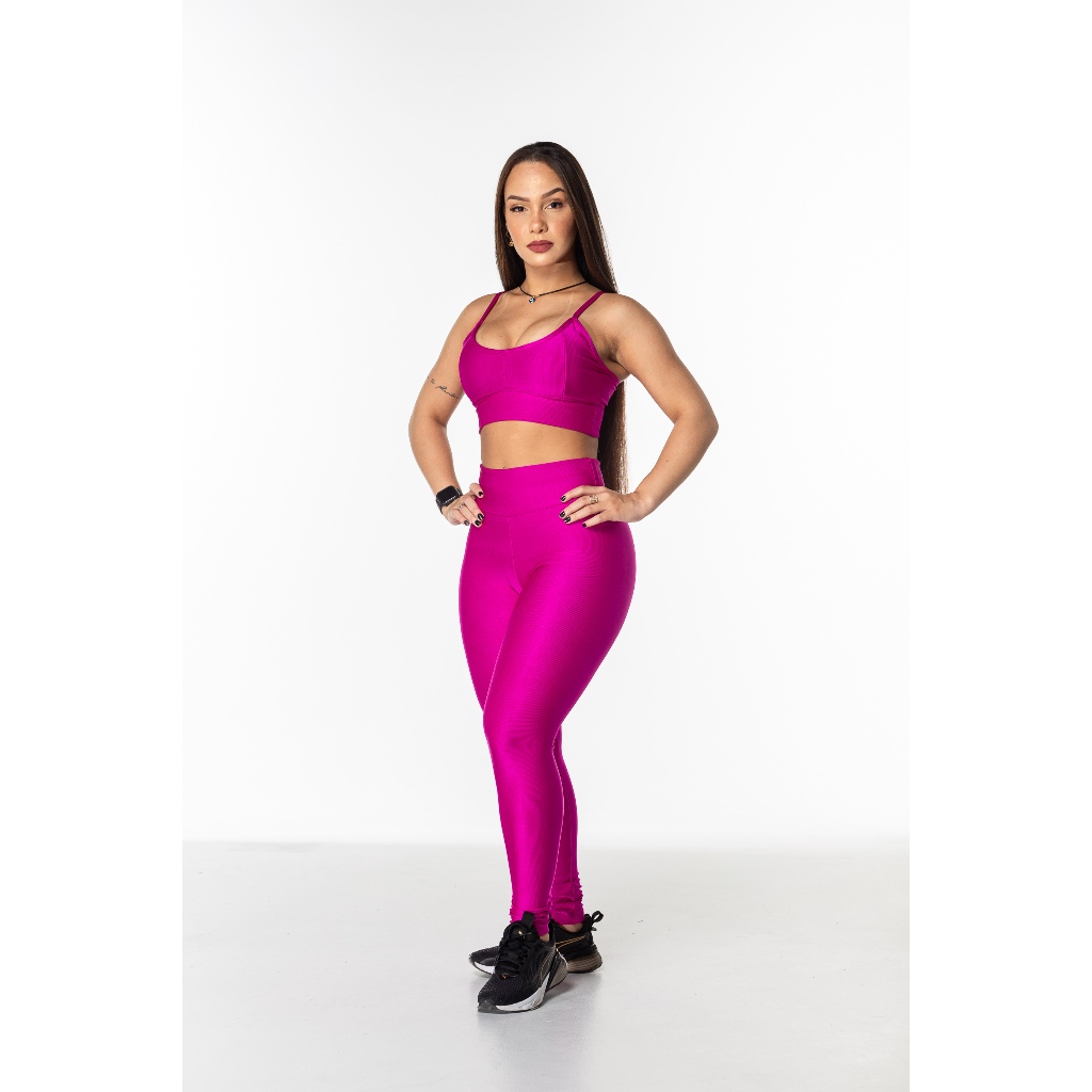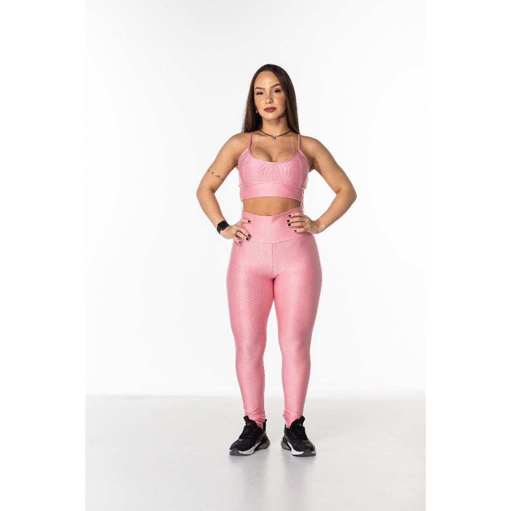 Conjunto Academia Top + Legging Canelado Poliamida Premium Roupa Fitness Brilho 3D