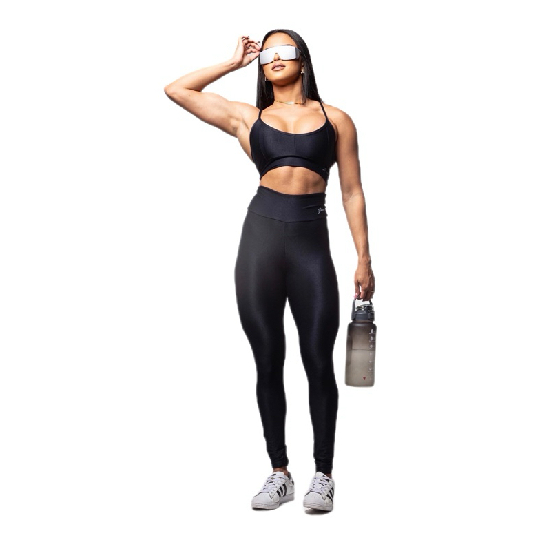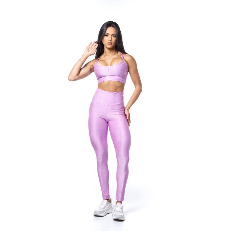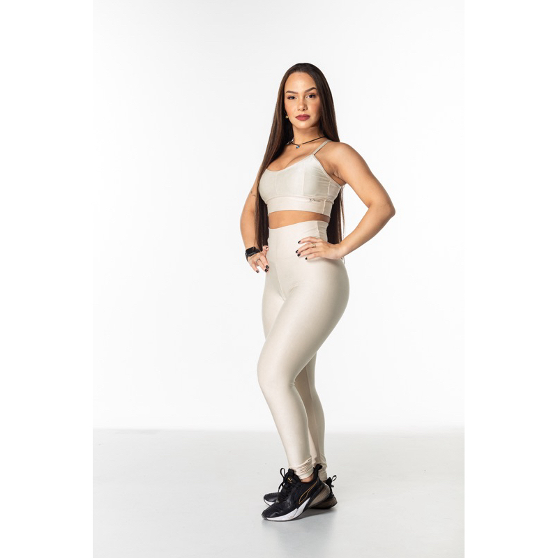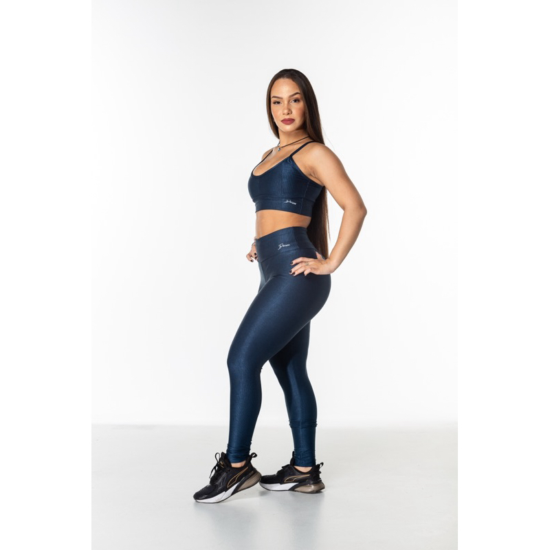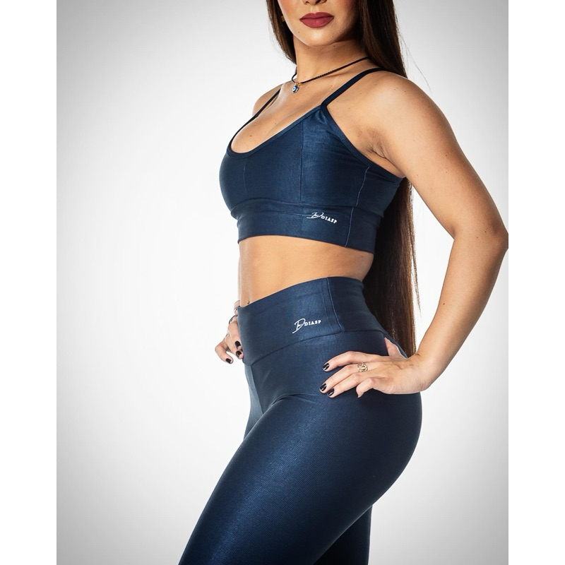 Conjunto Academia Top + Legging Canelado Poliamida Premium Roupa Fitness Brilho 3D