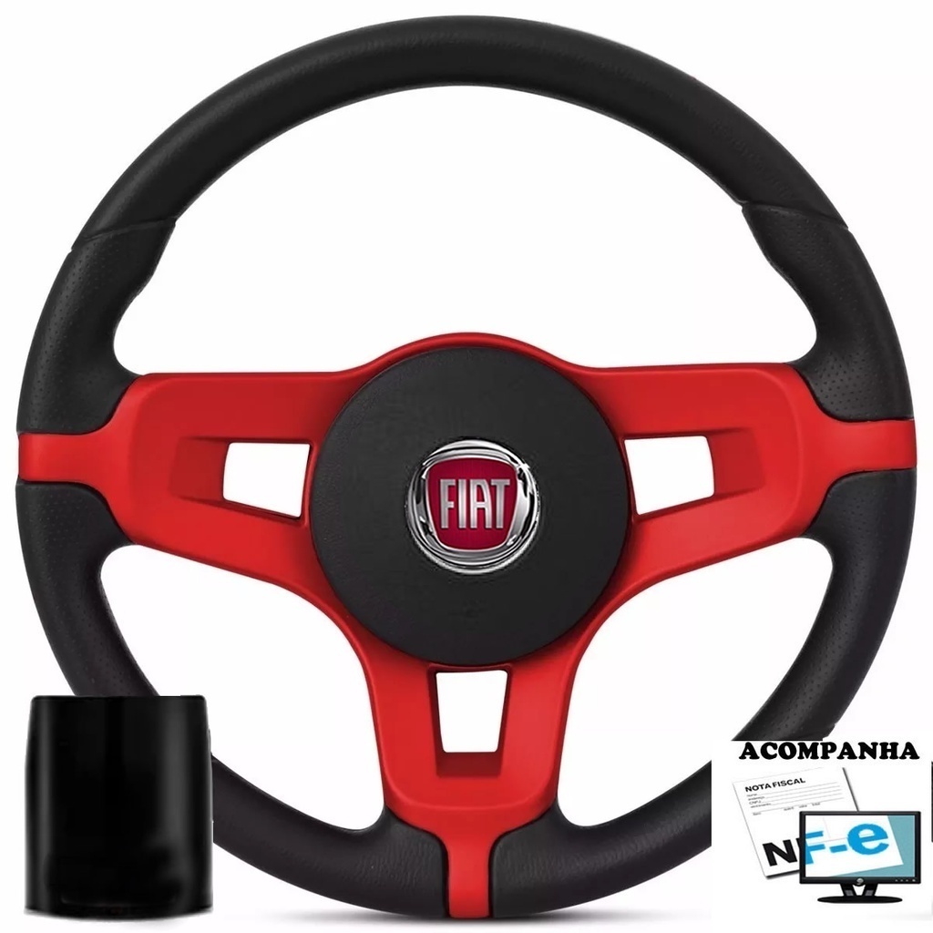 Volante Esportivo Uno 95-01 Elba 95-96 Fiorino 95-01 Buzina Central Mustang Fiat Tempra Cubo E Logo